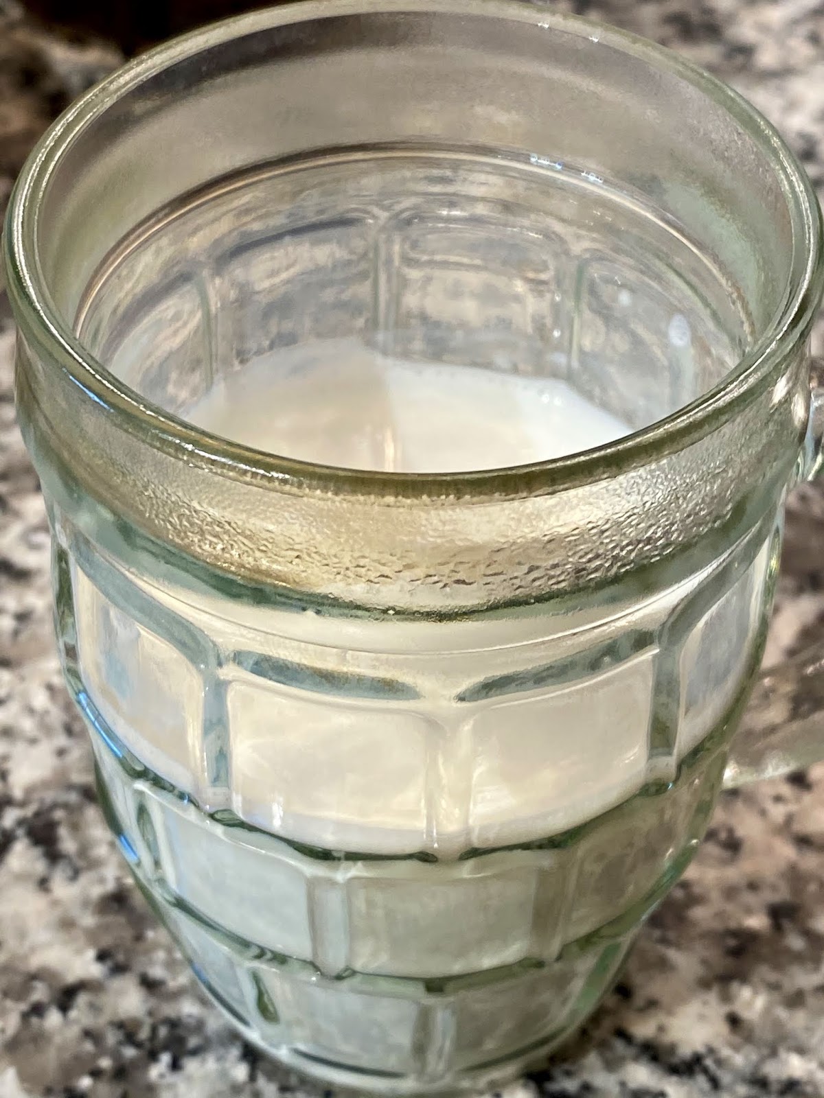 Чашку (желательно стеклянную) или стакан до половины (или на две трети) наполняем холодным или горячим молоком.