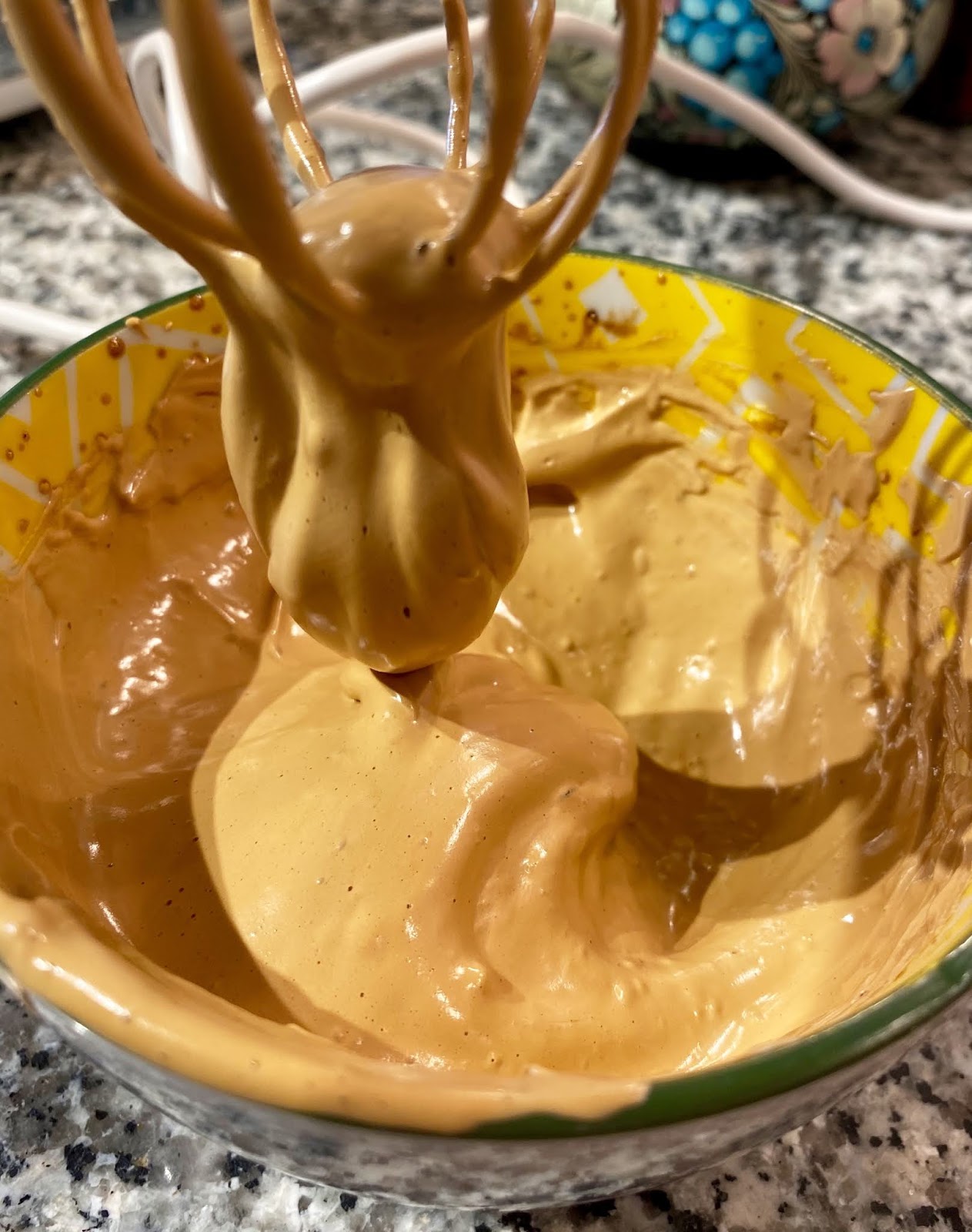 Сверху выкладываем кофейную пену. Посыпаем какао, корицей, молотым печеньем или дополнительным растворимым кофе.