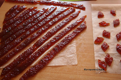 Затем отделяем конфеты от бумаги ( отмывается легко) Массу режем на произвольные фигуры. Даем немного обсохнуть .Можно конфеты немного обсыпать сахарной пудрой.