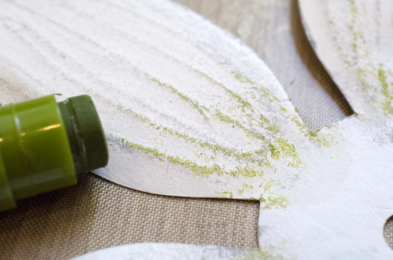 Помним о натуральной ромашке... Берем светло-зеленый и от середины тоже слегка проводим по полоскам.