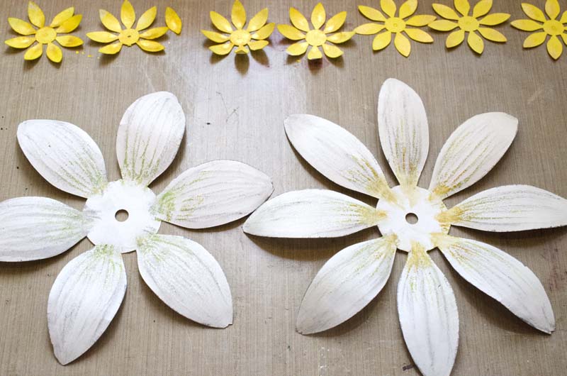 Берем чуть разбавленный акриловый грунт и тонким слоем быстро покрываем лепестки.
