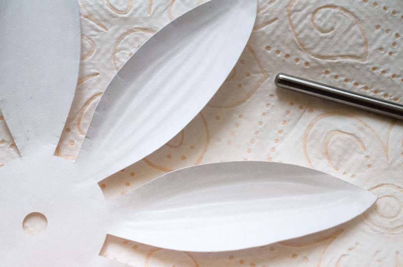 Маленькие заготовки тисним очень просто - делаем лепестки вогнутыми, без дополнительных полосок. Все наши белые заготовочки готовы!