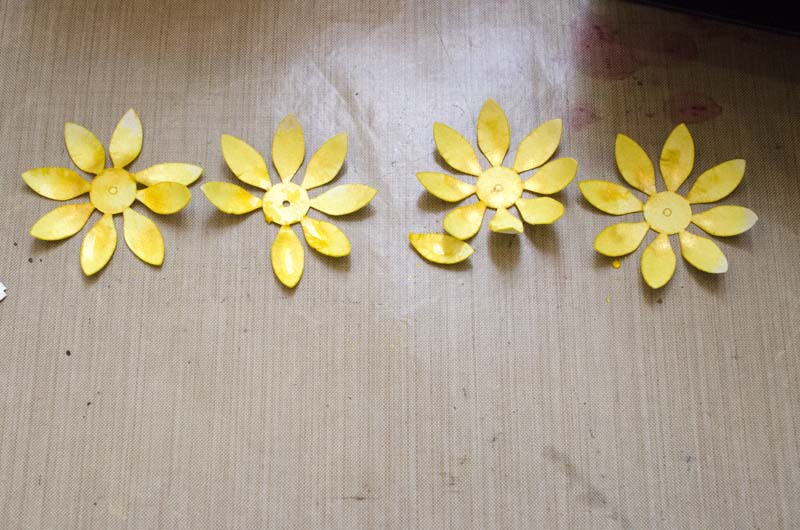 Маленькие желтые заготовки разрезаем на отдельные фрагменты и приклеиваем вот так, формируя средцевину.
