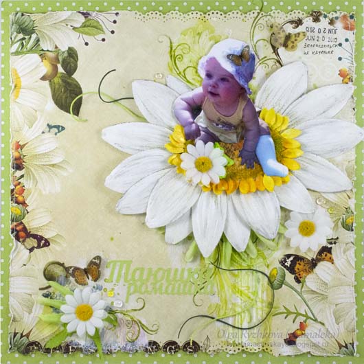 Для странички у меня приготовлена вот такая вырезанная фотография малышки, которую я посажу в серединку большой ромашки (ну, это не имеет непосредственного отношения к изготовлению цветка).