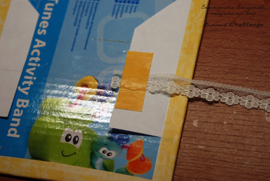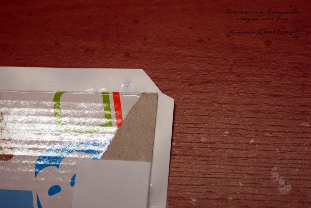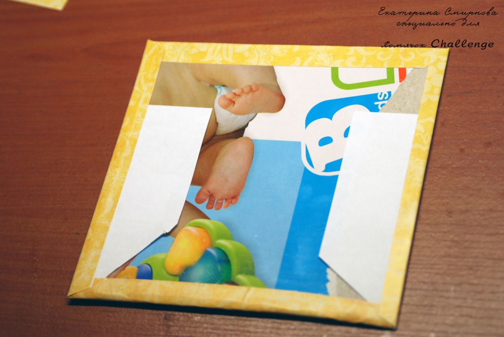 5. На картонку приклеиваем прямоугольник №2. Делаем это как показано на фотографиях ниже:
