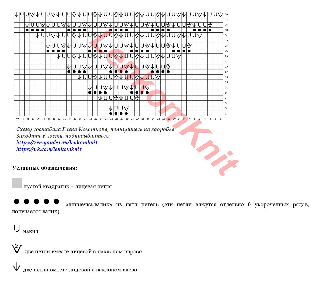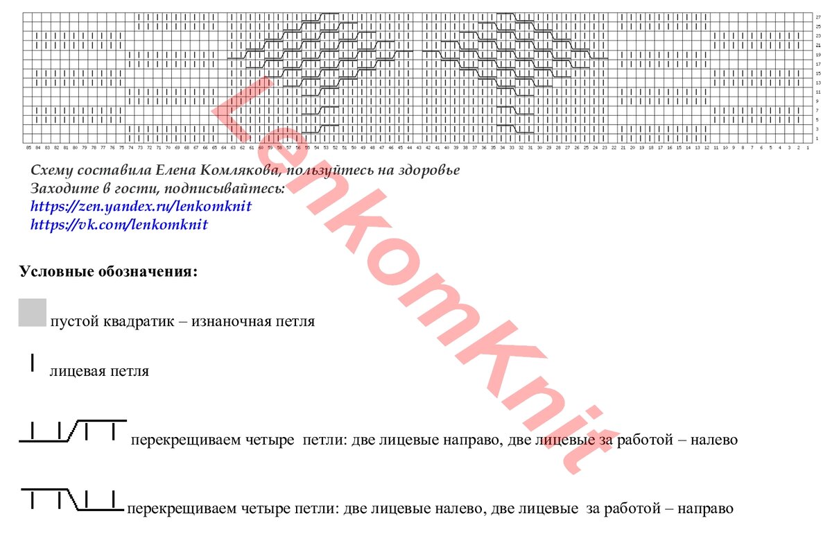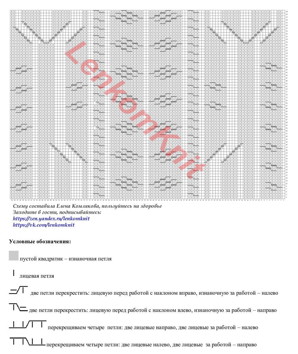 На рисунке - один раппорт узора в высоту. В ширину - повторяем с 1 по 30 петли, остальные петли слева - для симметрии.