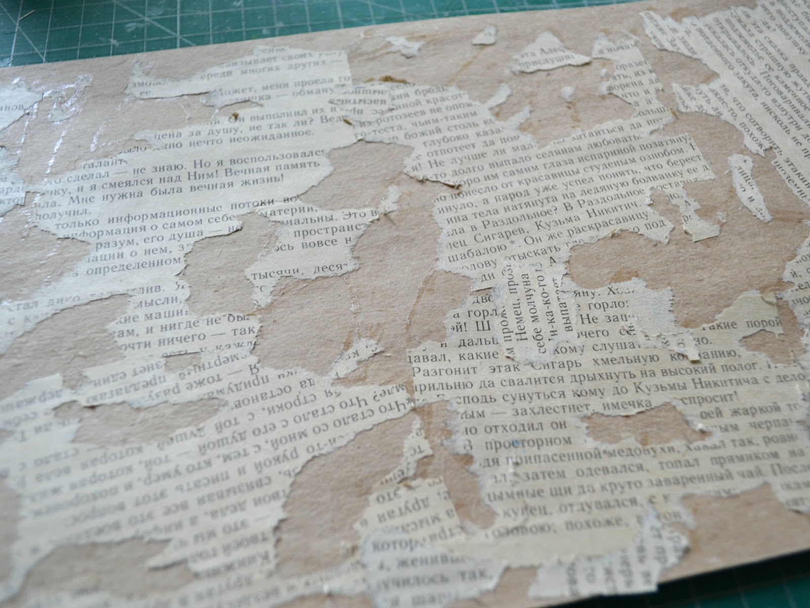 После того как клей хорошенько схватился, начинаем безжалостно обдирать книжные странички. В итоге должно получится примерно как у меня))