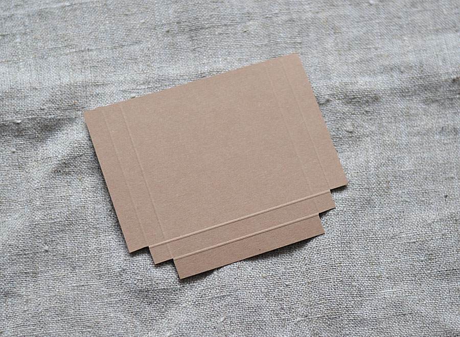 Вторая деталь - будущий кармашек для шоколадки. Он начинается с картонного прямоугольника 10х12 см. На прямоугольнике делаем сгибы, как показано на фото. Расстояние между соседними линиями - 1 см. Длинную сторону бигуем с двух сторон, короткую - с одной.