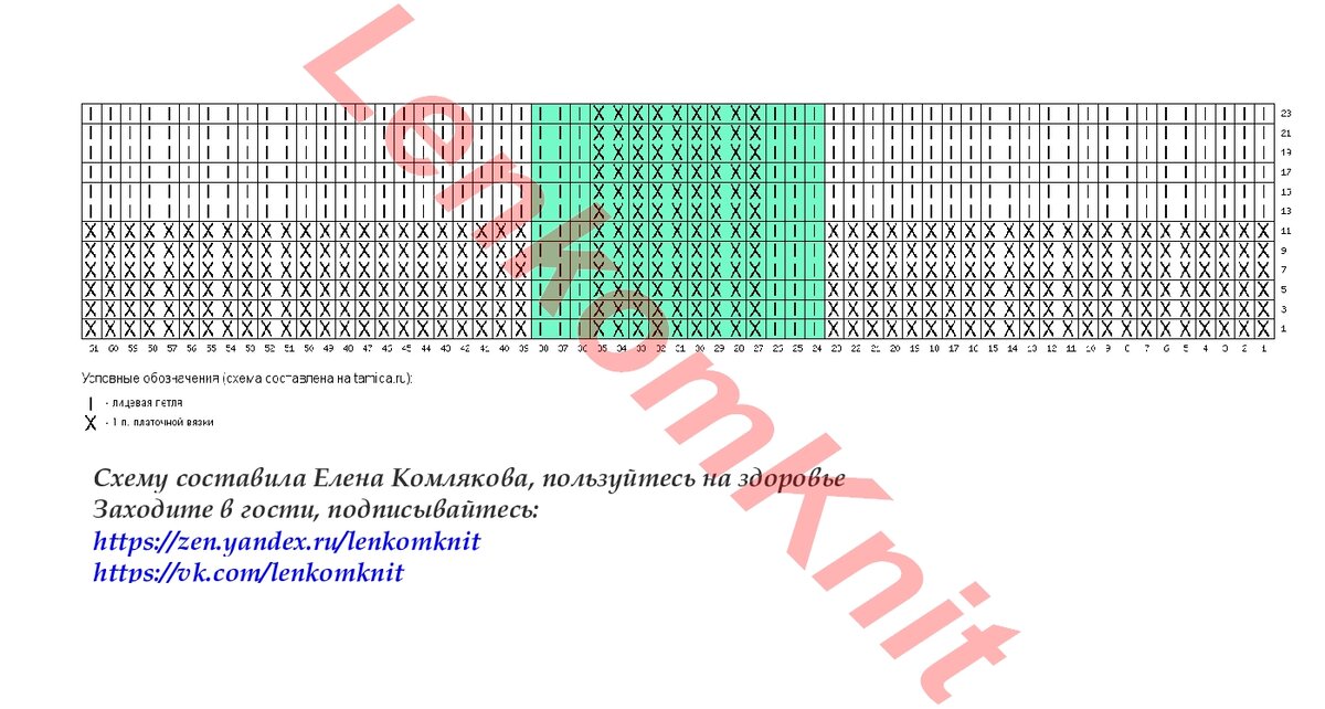 Между этими полосами вяжутся горизонтальные рельефные полосы-разделители, их схема - на рисунке.