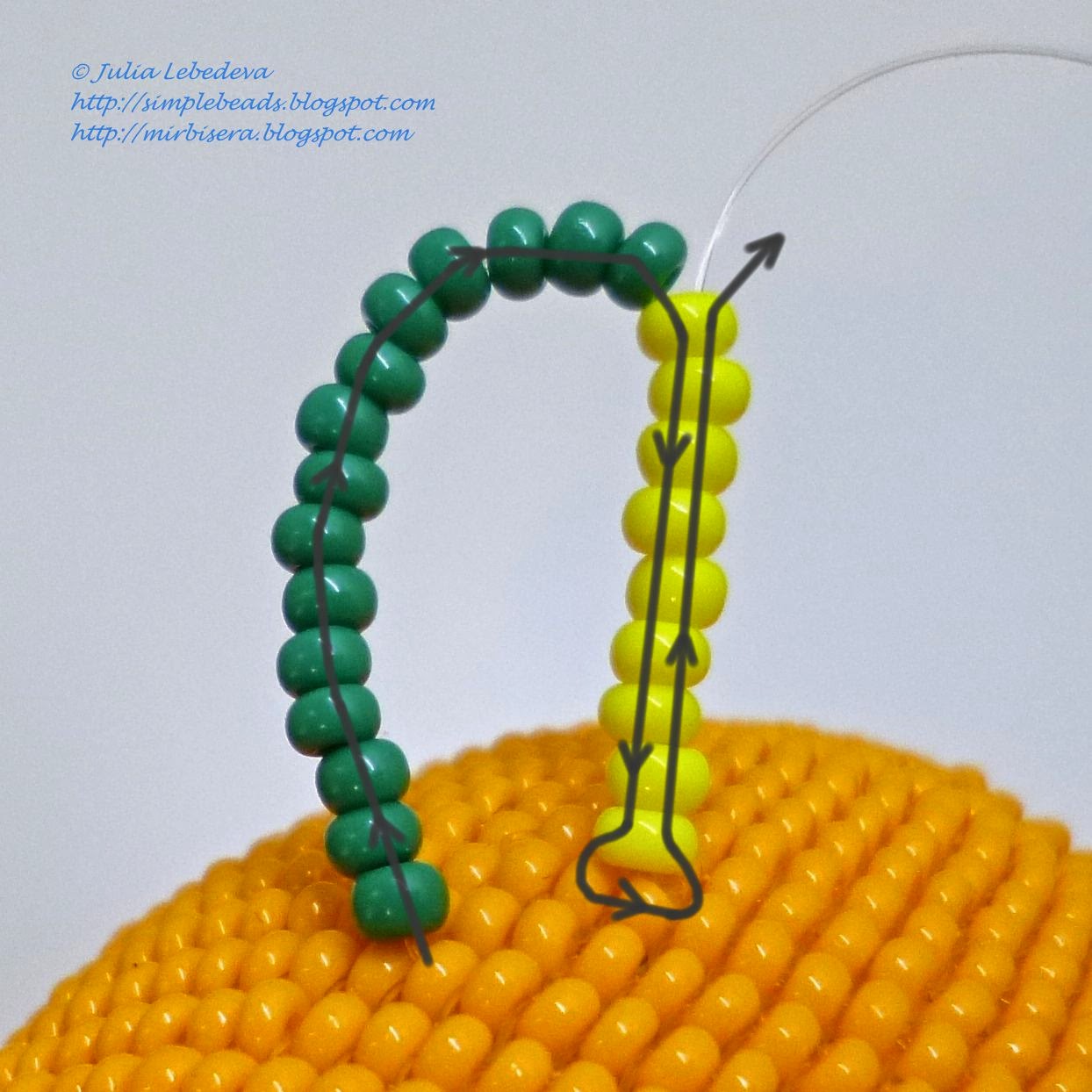 второй сегмент состоит из 6 зелёных и 9 жёлтых бисеринок,