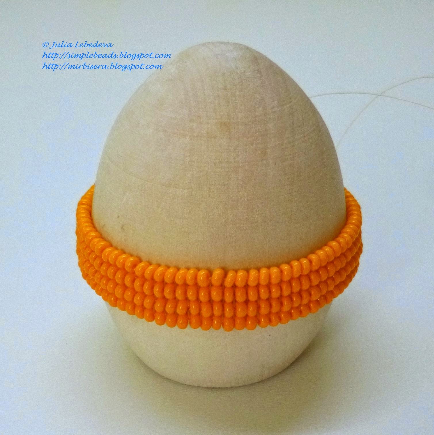 и оплетаем его оранжевым бисером в технике ручного ткачества (напоминаю, что основы этой техники подробно описаны