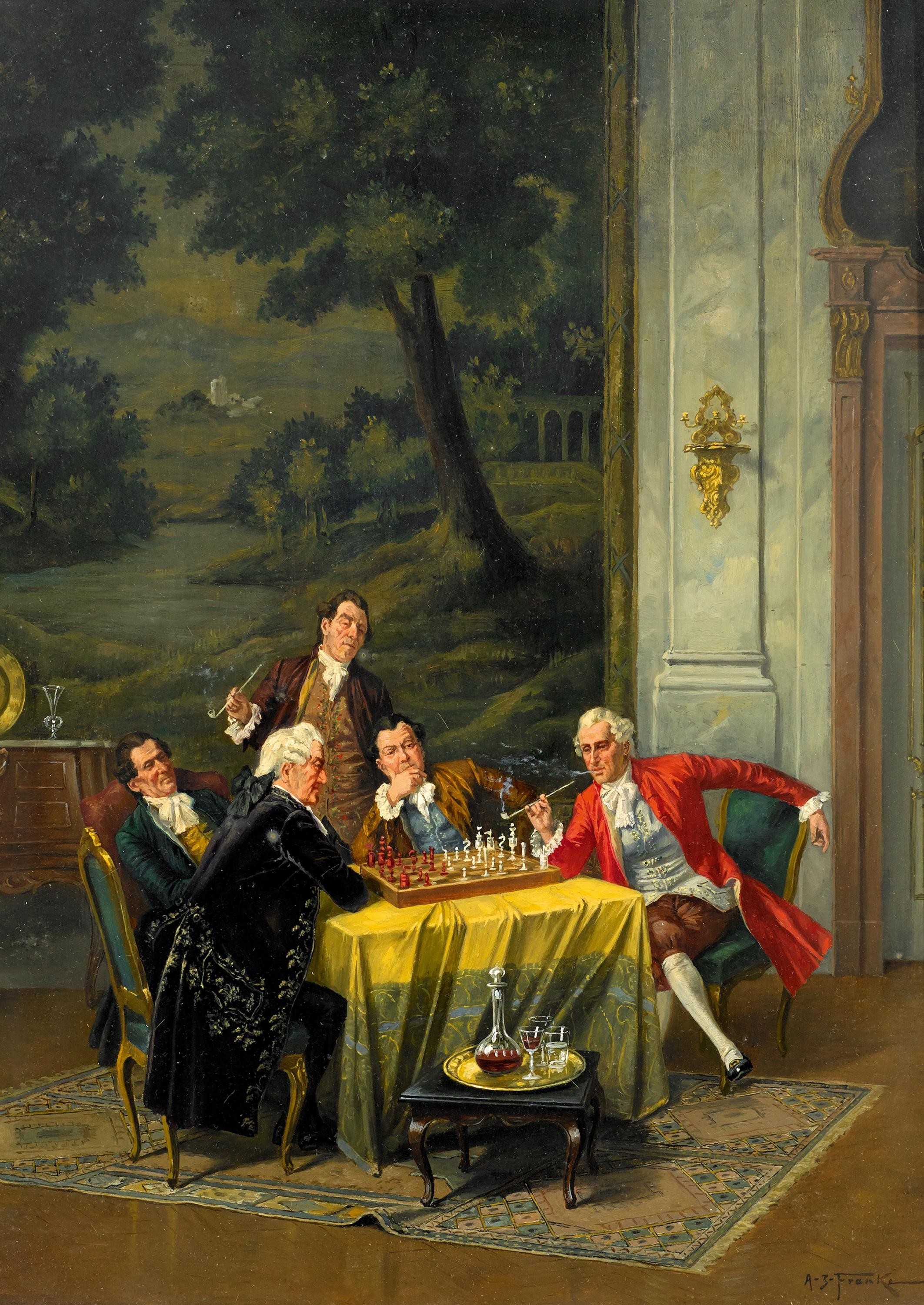 Herren beim Schachspiel im Salon