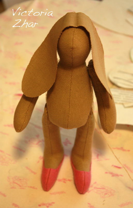 Уши я шью в самый последний момент, когда уже одела игрушку, чтоб выбрать, какая ткань лучше всего дополнит образ. есть у меня однотонная нежно-розовая, которая в принципе подойдет любому зайцу. но хочется разнообразия. поэтому об ушах поговорим в следующем МК, посвященном одежде (очень уж меня просили про воротник поподробнее рассказать).