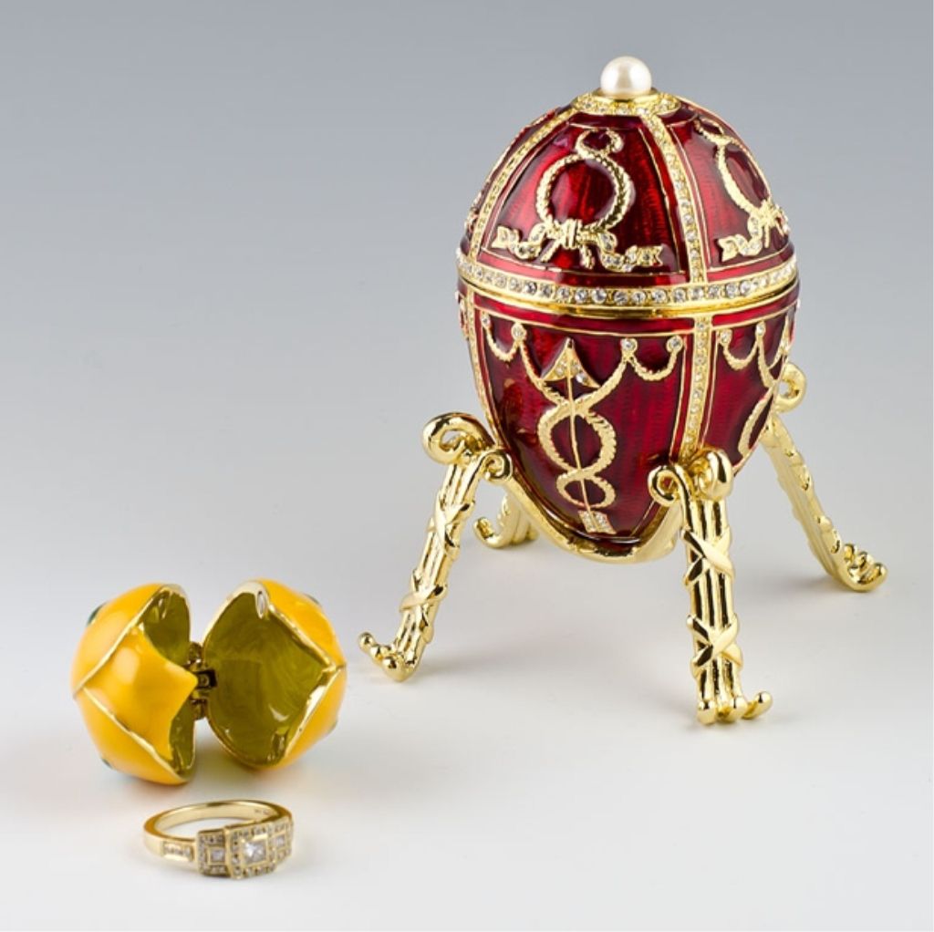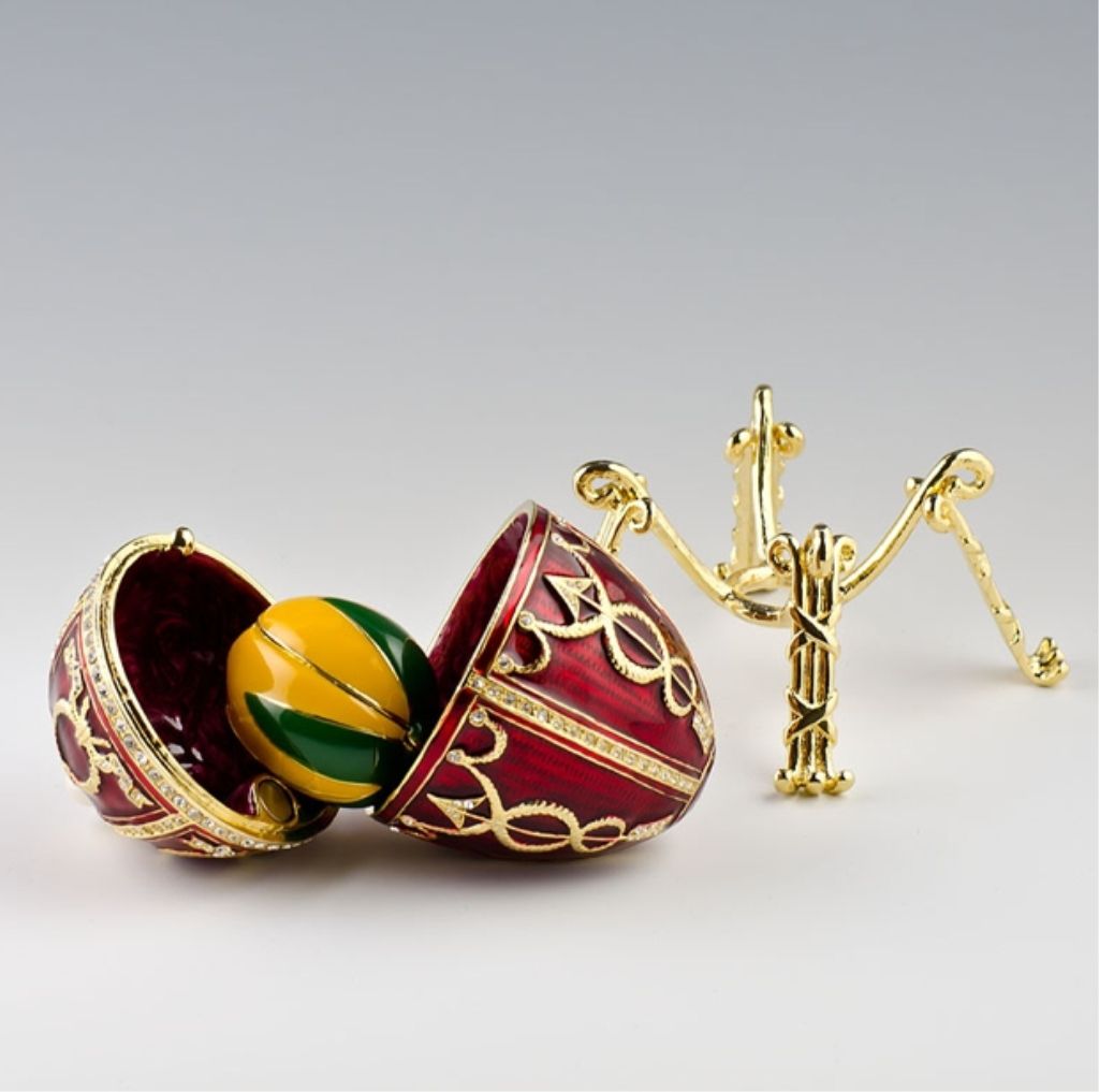 18 апреля 1897 года Николай II преподнёс яйцо своей матери, вдовствующей императрице Марии Федоровне, на Пасху. На основании квитанции фирмы Фаберже его стоимость составляла 3250 рублей.В описях конфискованного императорского имущества 1917 и 1922 годов яйцо не числится. Предположительно, оно было взято Марией Фёдоровной до 1917 года. Представители Совнаркома и конторы «Антиквариат», которые отвечали за распределение предметов, хранившихся ранее в императорских дворцах, часто вынимали из пасхальных яиц Фаберже сюрпризы, чтобы получить большую прибыль.Сюрприз данного яйца имеет маркированную дату — 1897 год. Это объясняет то, что многие ранние ювелирные яйца Фаберже не имели непосредственной маркировки, а даты изготовления проставлялись на сюрпризах.