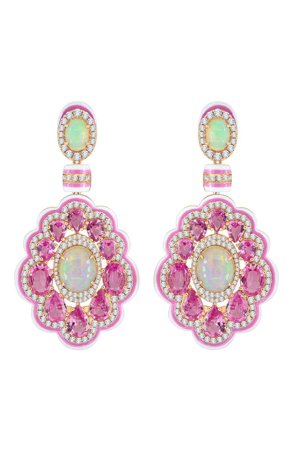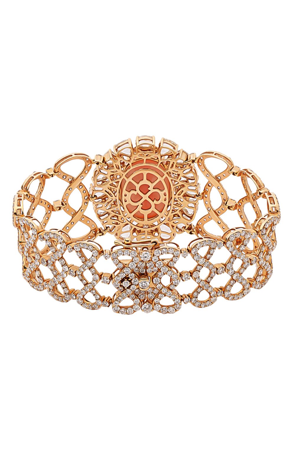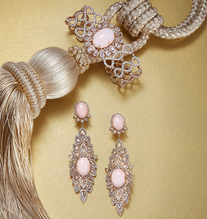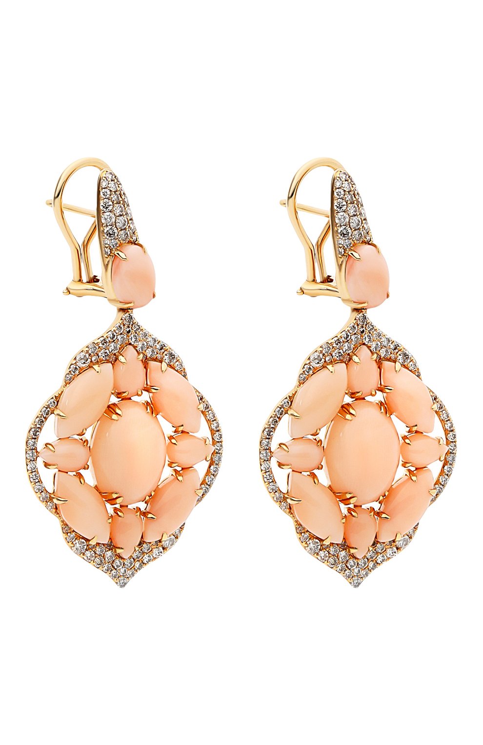 Серьги и браслет Sutra Jewels из розового золота с бриллиантами и кораллами Название бренда Sutra Jewels переводится с санскрита как «собрание священных стихов», которое на ювелирном языке воплотилось в коллекцию характерных украшений.