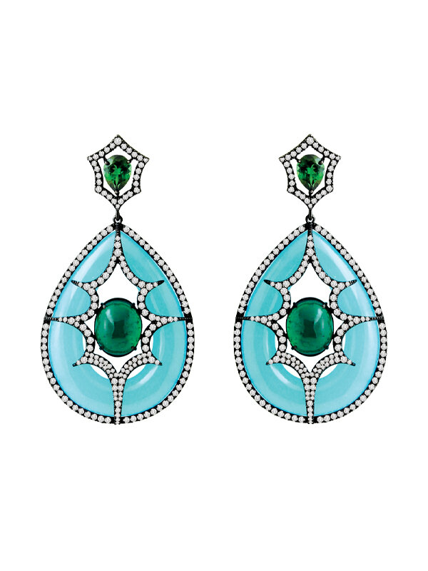 Каждое отличается эффектными формами и инкрустацией крупными камнями. «Особенно я тяготею к опалам и турмалинам Параиба, чей небесно-голубой оттенок возвращает меня мысленно на пляжи Мальдив», – любит повторять Арпита. Но нужно сказать, что без помощи мужа, потенциал Арпиты, как и украшений не был бы раскрыт.