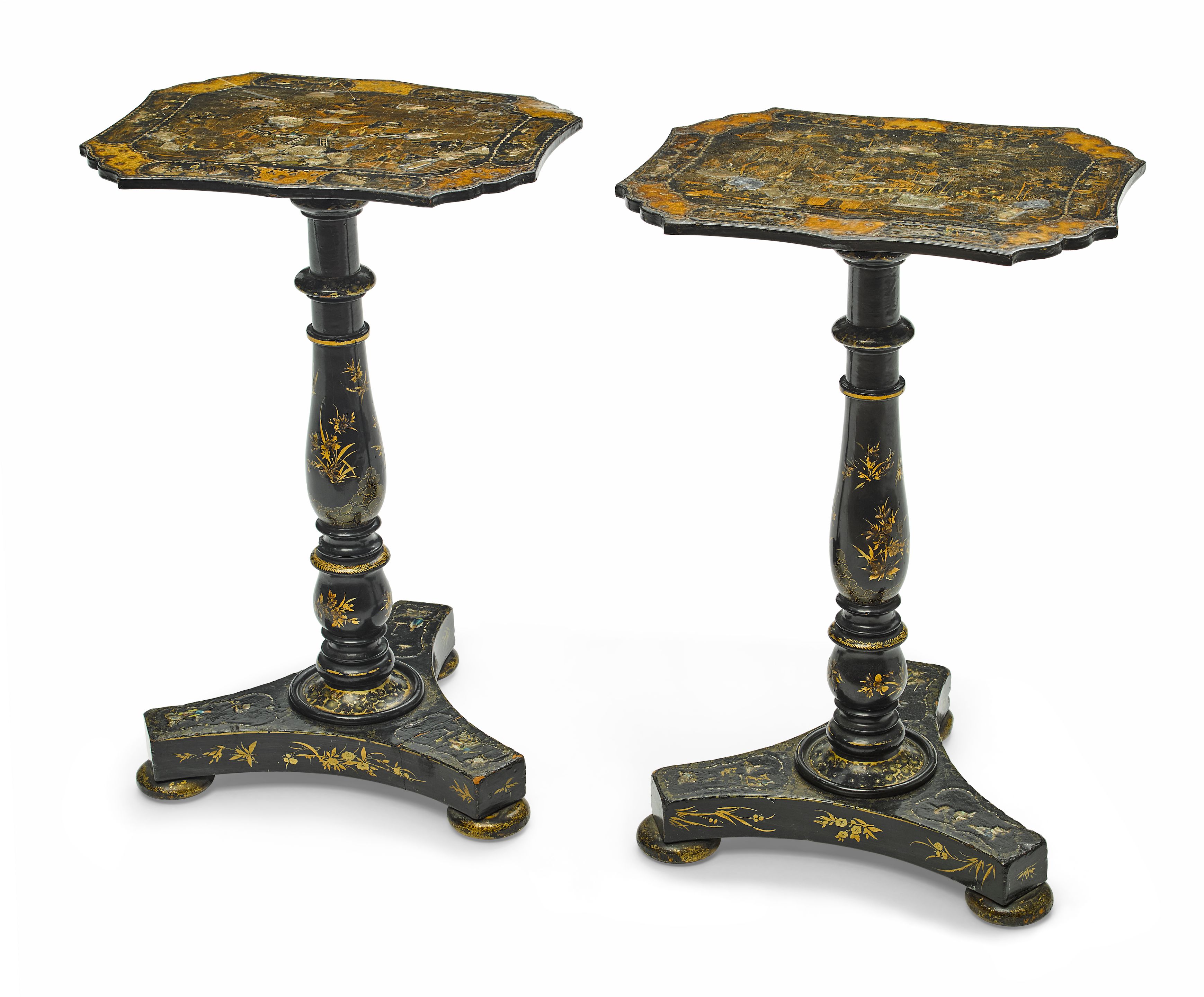 A pair of English lacquered low occasional tables
