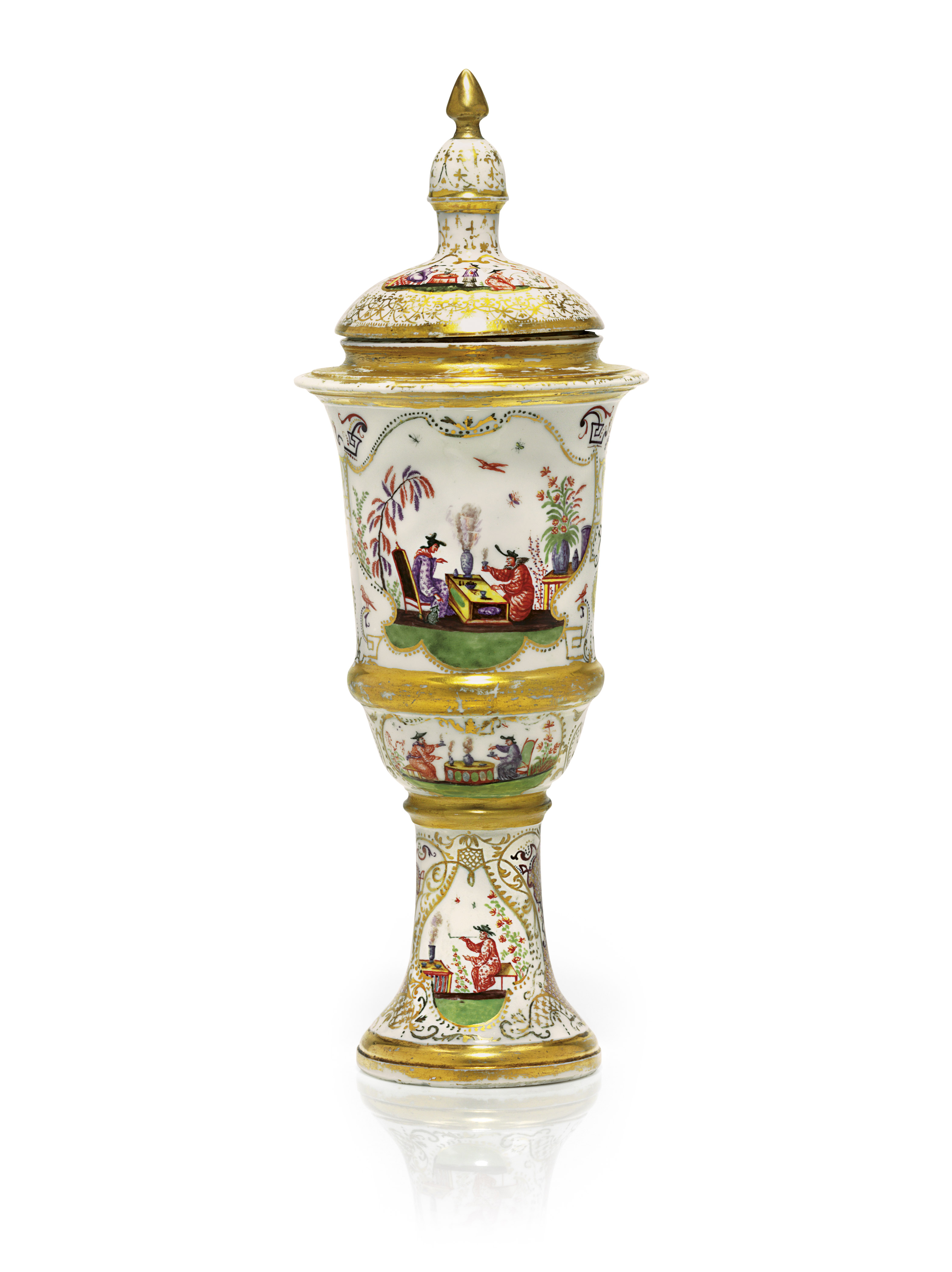 ÔËÀÊÎÍ Äëÿ ÄÓÕΠMEISSEN CHINOISERIE  ÎÏÐÀÂÅ ÈÇ ÏÎÇÎËÎ×ÅÍÍÎÃÎ ÌÅÒÀËËÀ