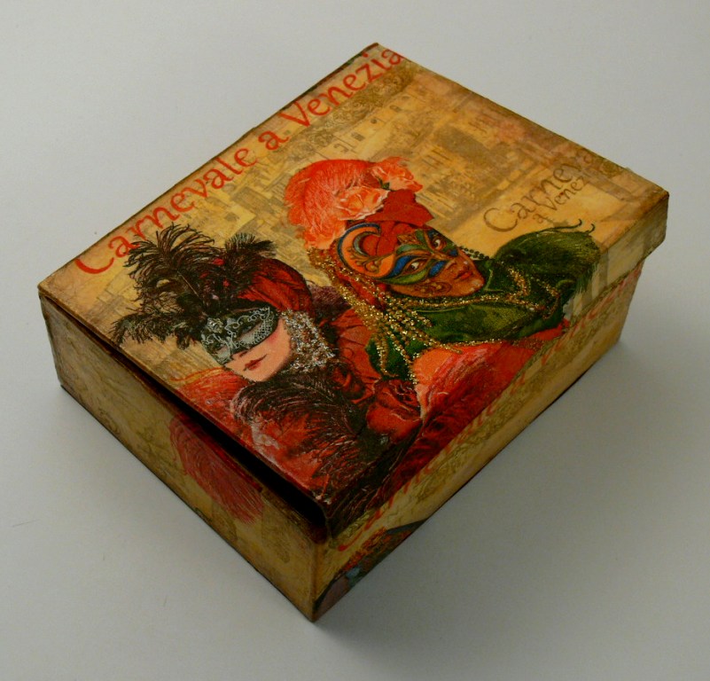 заскрапить, покрасить или задекорировать в классическом стиле картонажа - драпировка тканью. Выбор за вами!
