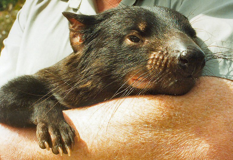 Но сейчас дьяволы находятся грани вымирания по, наверное, самой жуткой причине в истории Земли. В конце прошлого века вид поразила эпидемия вирусов, провоцирующих рост раковых опухолей и быстро сводящих дьяволов в могилу. Всего за 40 лет их численность сократилась на 80%. И даже ещё живые дьяволы очень страдают и выглядят настолько жутко, что мы не решимся их вам показывать. Но люди не оставляют дьявольских малышей на произвол судьбы, мы пытаемся выяснить, как спасти малышей от болезни и остановить их вымирание.