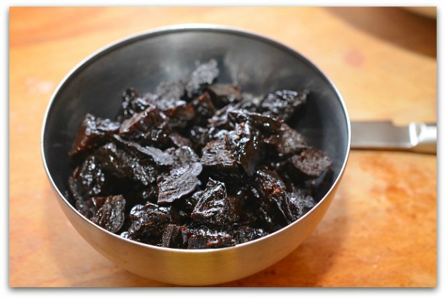 2. Нарезаем чернослив на 4 части каждый, если совсем крупный, можно на 6 частей.