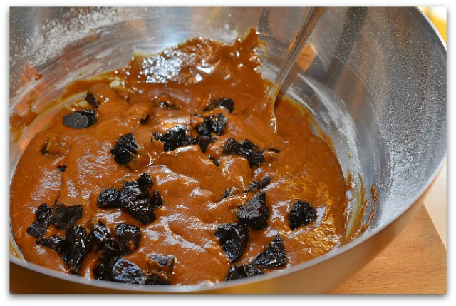 5. Добавляем в тесто нарезанный чернослив. Перемешиваем.