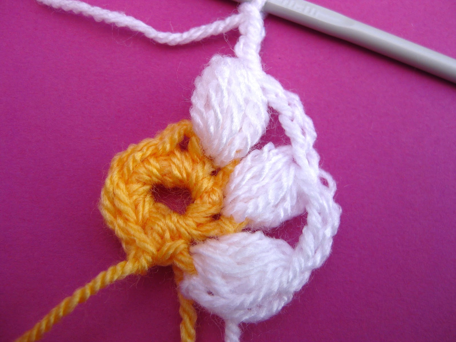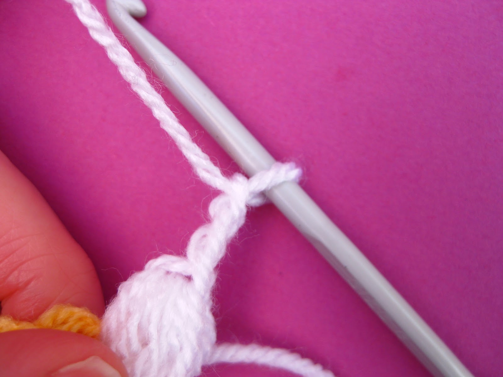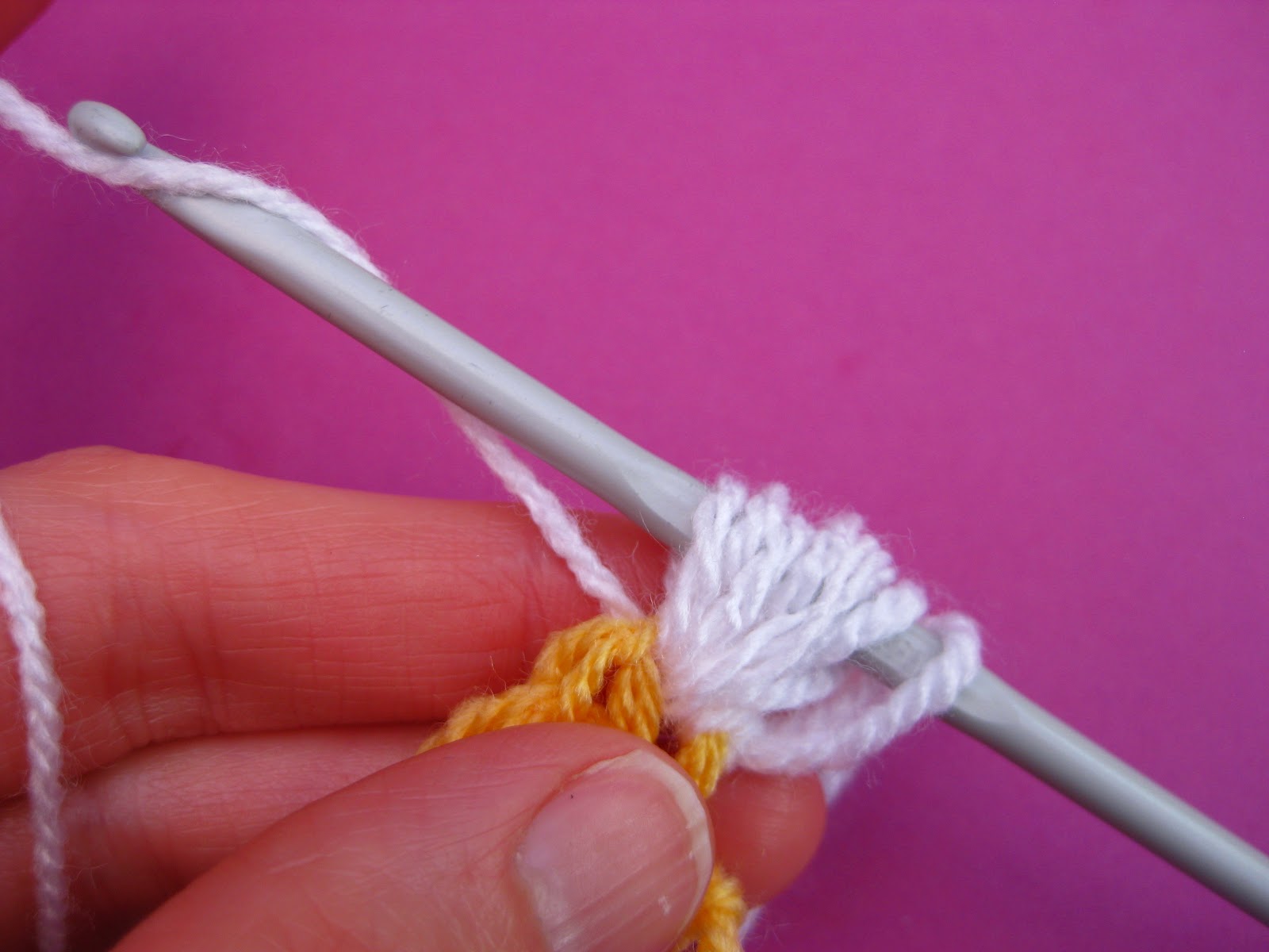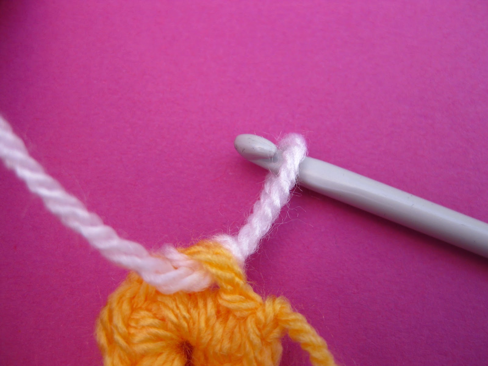 с помощью желтой пряжи.......... начать с цепочки 4 и скольжения строчки в первой ch, чтобы вступить в форме кольца...........
