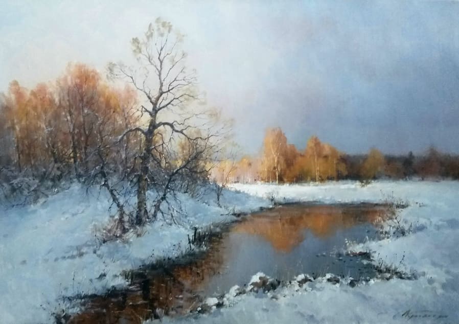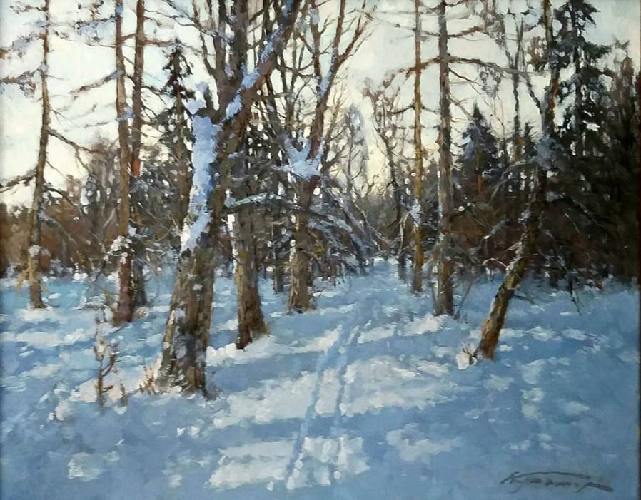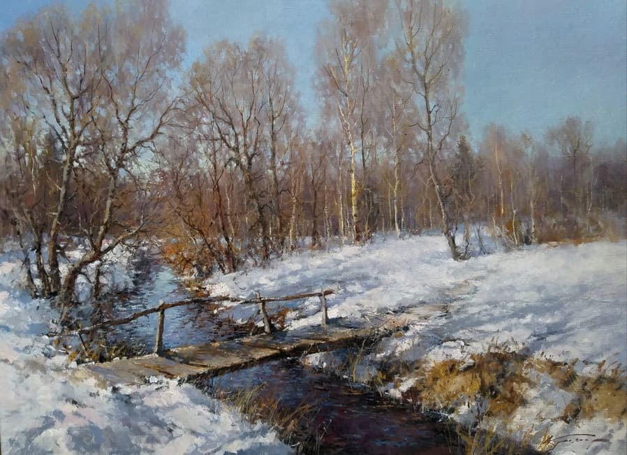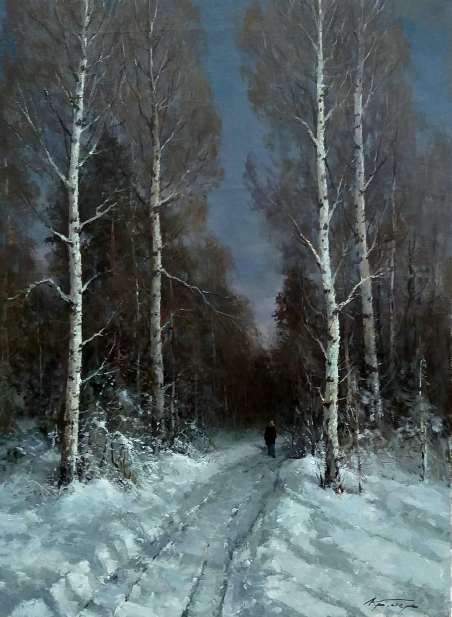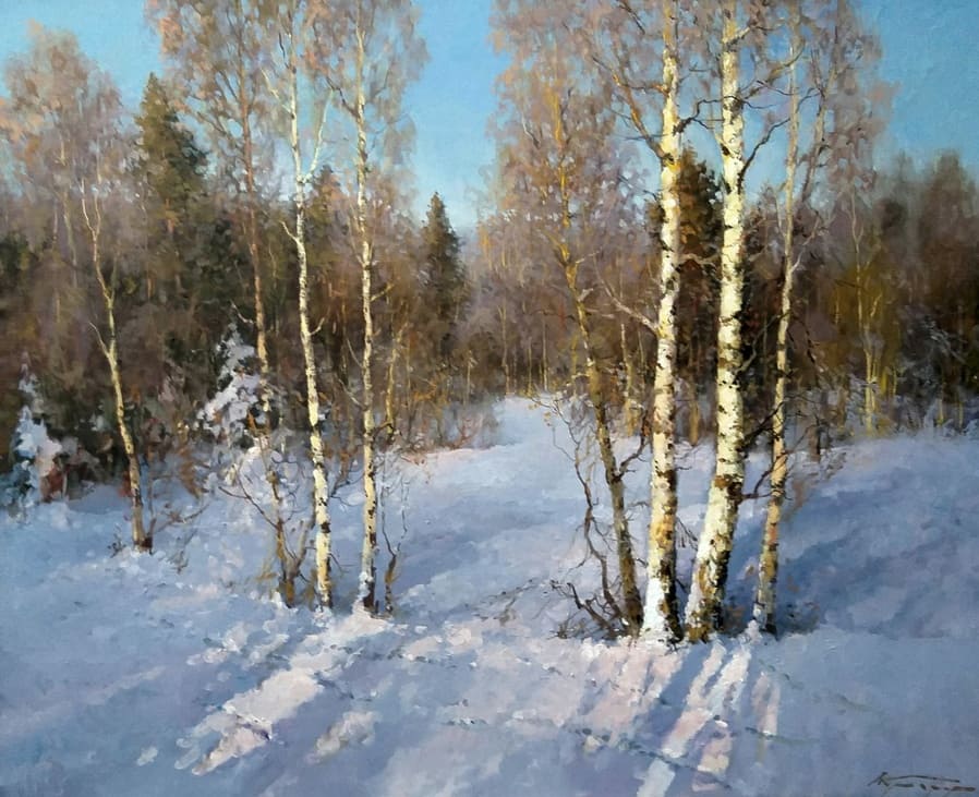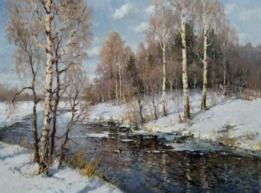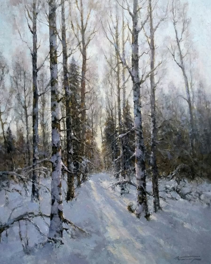 Все работы художников Кремер - здесь Престижный Институт живописи, скульптуры и архитектуры имени И.Е. Репина в Санкт-Петербурге, Россия, одна из ведущих в мире академий изящных искусств, основанная Екатериной Великой в 1757 году, называет Кремера «важной фигурой в современном русском реализме. Он обеспечивает «мост» от современного реализма к европейскому и русскому искусству XIX века. Искусство Кремера сохраняет эту богатую традицию живописи для следующих поколений русских художников». Династия художников Кремер: Сын Александр Маркович Кремер (Россия, 1958) ЗимнеОсеннеПейзажное (часть-3) Под полозьями скрипят белоснежные сугробы, Отступили по утру надоевшие морозы, Выше небо над землёй, сани мчатся всё быстрее, И синица у крыльца уже скачет веселее. Это значит, что февраль позовёт свои метели, И озябшею рукой постучится ночью в двери, А потом во двор придёт снова оттепель нежданно, Чтоб сосульки за окном слёзы лили постоянно. Под полозьями скрипят бесконечные сугробы, Отступают день за днём холода зимы суровой, Чтоб в привычной суете согревала нас надежда, Ведь весна опять придёт в своё время неизбежно! © Copyright: Николай Гренков, 2025 Художник Александр Маркович Кремер родился 21 июля 1958 года в Ленинграде. В 1976 году поступил в ЛВХПУ им. В. И. Мухиной. Его учителями были А.П. Левитин, А.А. Мыльников, и В.Ф. Загонек. В 70-ые годы Александр Кремер сформировался как уникальный художник, гармонично сочетающий богатые традиции русского реализма 19-го века с современными стилями и течениями. Начал выставляться в России и на международном уровне с 1980 году. В 1992 году прошла персональная выставка А.Кремера в галерее RUSSIA, США, Аризона. Постоянный участник выставок Союза художников. Александр Кремер, член Союза Художников России, представитель ленинградской школы, пишет маслом замечательные пейзажи. Пейзажи русского севера, быстрая смена времён года, берёзовый лес и бескрайнее весеннее небо оказали глубокое влияние на творческую натуру Александра, который рос рядом с большой художественной традицией (Александр Маркович принадлежит к известной, имеющей глубокие исторические корни династии живописцев). Однако он не просто родился рядом с великой художественной традицией, он родился в ней. Вениам Вениаминович Кремер (1899-1978), дед Александра, был прекрасным художником в Санкт-Петербурге, современниками которого были такие русские мастера, как Николай Фешин, Александр Любимов, Петр Бучкин и Исаак Бродский. Его картины находятся в постоянных коллекциях многих лучших музеев России. Кроме того, отец Александра, Марк Вениаминович Кремер (р. 1928), также является уважаемым художником в Санкт-Петербурге. Оба мужчины часто путешествовали и выставлялись за границей в официальных поездках, спонсируемых Советским государством. Когда Александру было десять лет, двое старших Кремеров начали обучать его живописи. Это образование в области классической немецкой и русской живописи 19 века создало основу для растущего академического и эстетического мастерства Кремера в пейзаже. На самом деле Кремер рисует на мольберте Исаака Бродского и использует одну из палитр Ильи Репина — оба предмета Бродский оставил своему деду (Репин был учителем Бродского). Очевидно, что Кремер чувствует сильную связь с духом этих великих художников. Александр Кремер начал выставляться в 