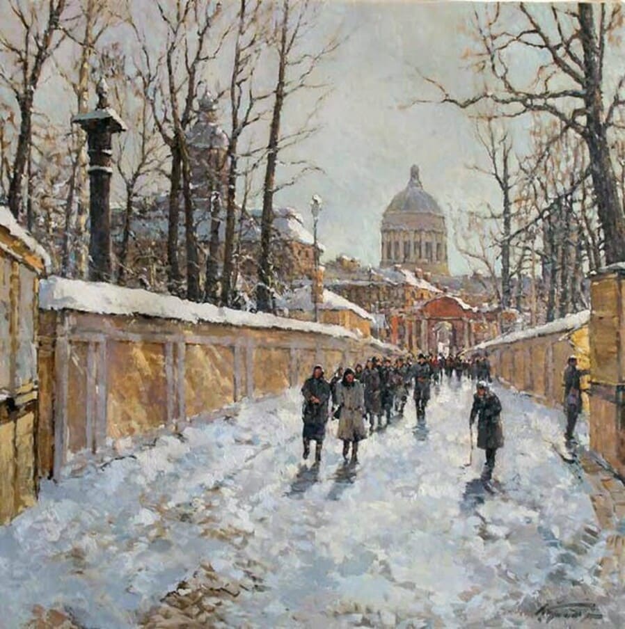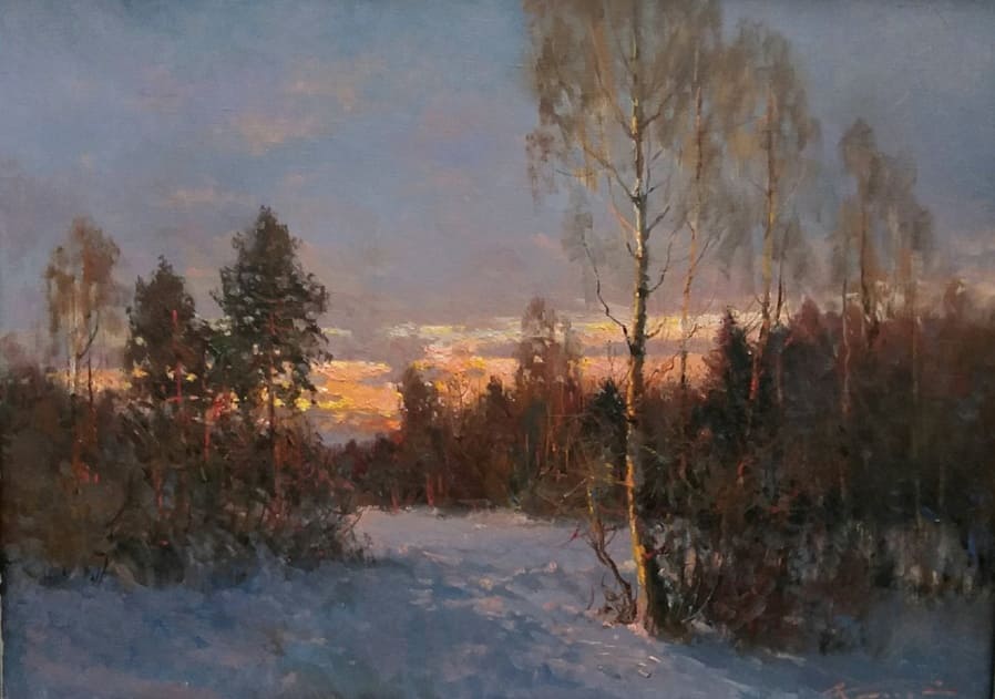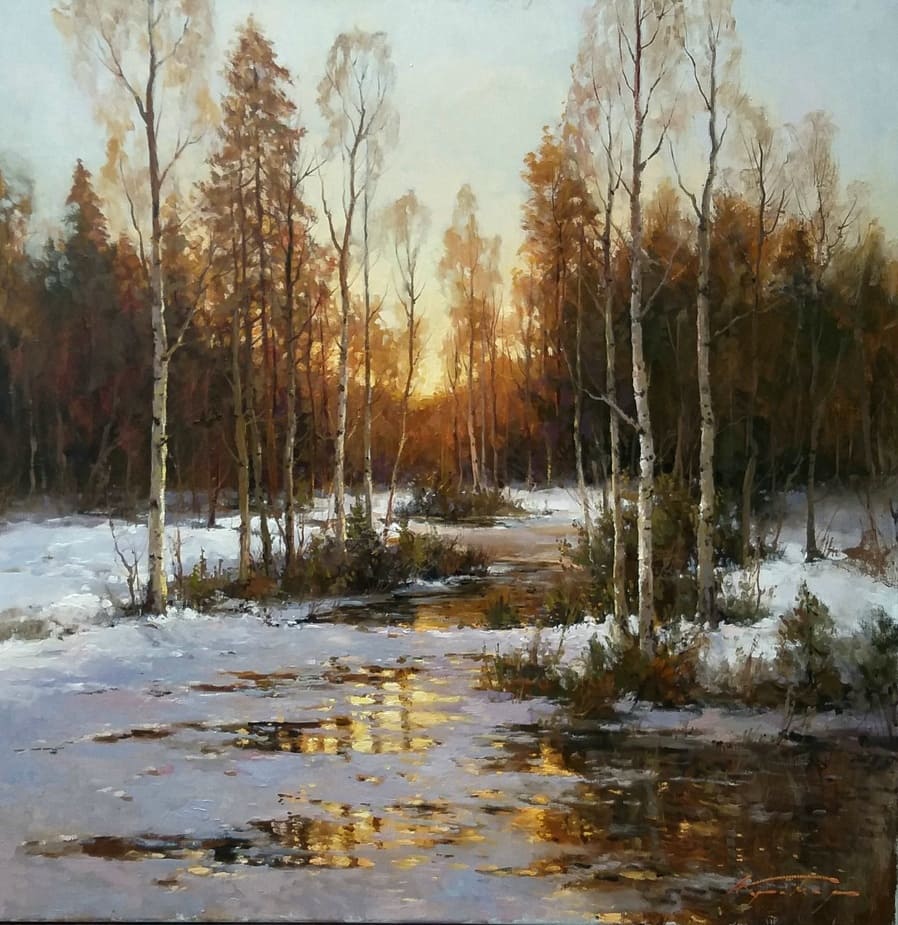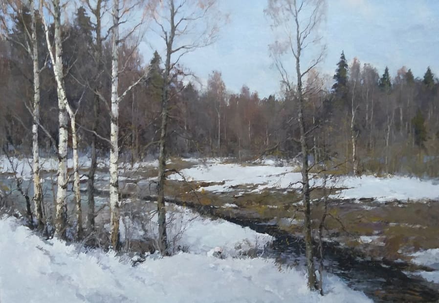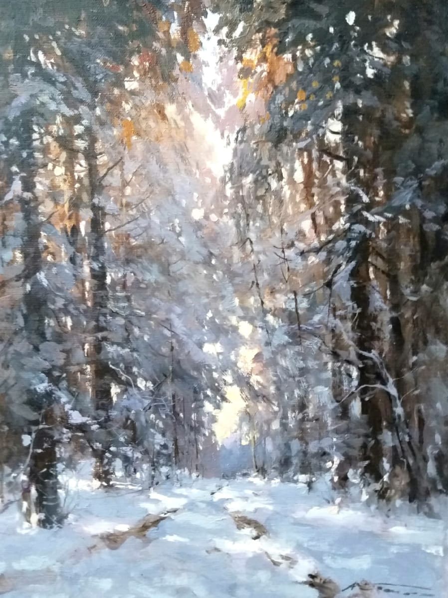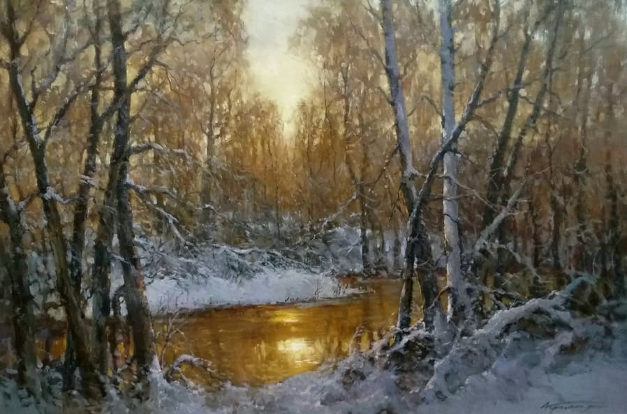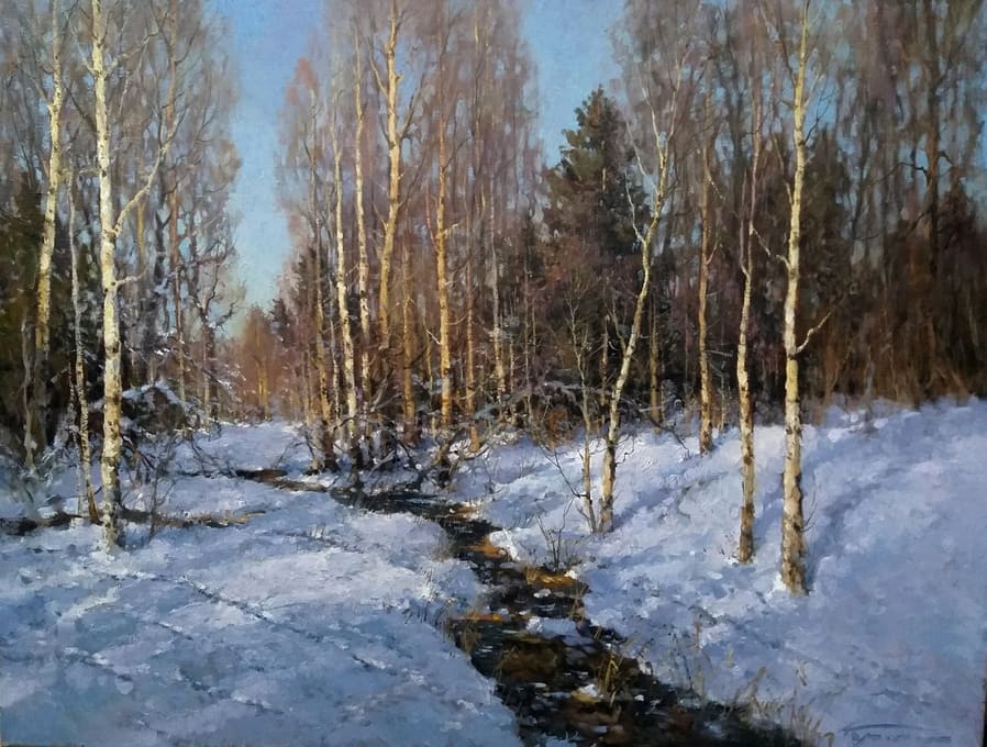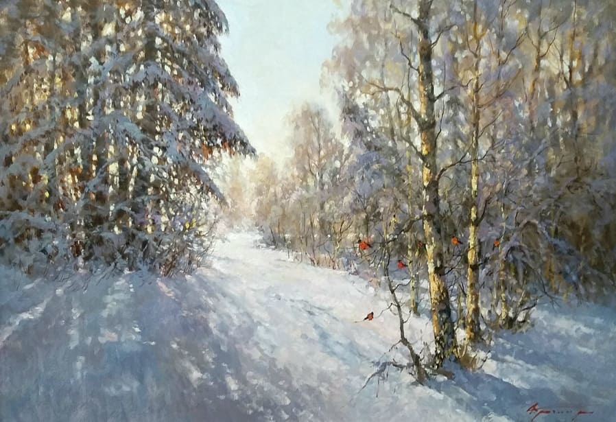 Все работы художников Кремер - здесь Престижный Институт живописи, скульптуры и архитектуры имени И.Е. Репина в Санкт-Петербурге, Россия, одна из ведущих в мире академий изящных искусств, основанная Екатериной Великой в 1757 году, называет Кремера «важной фигурой в современном русском реализме. Он обеспечивает «мост» от современного реализма к европейскому и русскому искусству XIX века. Искусство Кремера сохраняет эту богатую традицию живописи для следующих поколений русских художников». Династия художников Кремер: Сын Александр Маркович Кремер (Россия, 1958) ЗимнеОсеннеПейзажное (часть-3) Под полозьями скрипят белоснежные сугробы, Отступили по утру надоевшие морозы, Выше небо над землёй, сани мчатся всё быстрее, И синица у крыльца уже скачет веселее. Это значит, что февраль позовёт свои метели, И озябшею рукой постучится ночью в двери, А потом во двор придёт снова оттепель нежданно, Чтоб сосульки за окном слёзы лили постоянно. Под полозьями скрипят бесконечные сугробы, Отступают день за днём холода зимы суровой, Чтоб в привычной суете согревала нас надежда, Ведь весна опять придёт в своё время неизбежно! © Copyright: Николай Гренков, 2025 Художник Александр Маркович Кремер родился 21 июля 1958 года в Ленинграде. В 1976 году поступил в ЛВХПУ им. В. И. Мухиной. Его учителями были А.П. Левитин, А.А. Мыльников, и В.Ф. Загонек. В 70-ые годы Александр Кремер сформировался как уникальный художник, гармонично сочетающий богатые традиции русского реализма 19-го века с современными стилями и течениями. Начал выставляться в России и на международном уровне с 1980 году. В 1992 году прошла персональная выставка А.Кремера в галерее RUSSIA, США, Аризона. Постоянный участник выставок Союза художников. Александр Кремер, член Союза Художников России, представитель ленинградской школы, пишет маслом замечательные пейзажи. Пейзажи русского севера, быстрая смена времён года, берёзовый лес и бескрайнее весеннее небо оказали глубокое влияние на творческую натуру Александра, который рос рядом с большой художественной традицией (Александр Маркович принадлежит к известной, имеющей глубокие исторические корни династии живописцев). Однако он не просто родился рядом с великой художественной традицией, он родился в ней. Вениам Вениаминович Кремер (1899-1978), дед Александра, был прекрасным художником в Санкт-Петербурге, современниками которого были такие русские мастера, как Николай Фешин, Александр Любимов, Петр Бучкин и Исаак Бродский. Его картины находятся в постоянных коллекциях многих лучших музеев России. Кроме того, отец Александра, Марк Вениаминович Кремер (р. 1928), также является уважаемым художником в Санкт-Петербурге. Оба мужчины часто путешествовали и выставлялись за границей в официальных поездках, спонсируемых Советским государством. Когда Александру было десять лет, двое старших Кремеров начали обучать его живописи. Это образование в области классической немецкой и русской живописи 19 века создало основу для растущего академического и эстетического мастерства Кремера в пейзаже. На самом деле Кремер рисует на мольберте Исаака Бродского и использует одну из палитр Ильи Репина — оба предмета Бродский оставил своему деду (Репин был учителем Бродского). Очевидно, что Кремер чувствует сильную связь с духом этих великих художников. Александр Кремер начал выставляться в 