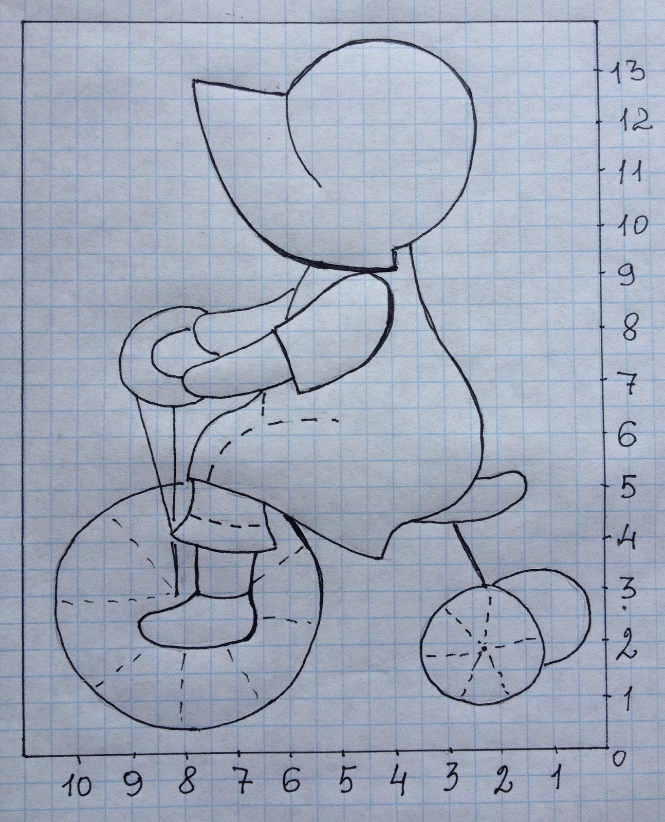 Шибко грамотные умеют это делать на компьютере. Я же все проделала дедовским, вернее, детсадовским способом: с помощью клея и ножниц (хвала советскому дошкольному образованию!). Поскольку рисунок на тонкой бумаге, я выкройки и детали наклеивала на альбомные листы.