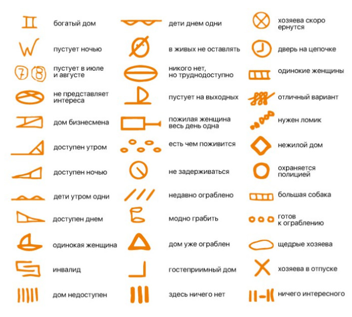Оказывается, у воров-домушников есть целая система опознавательных меток, благодаря которым наводчик, практически не пересекаясь с исполнителями преступления, может предоставить исчерпывающую информацию о владельцах той или иной квартиры.