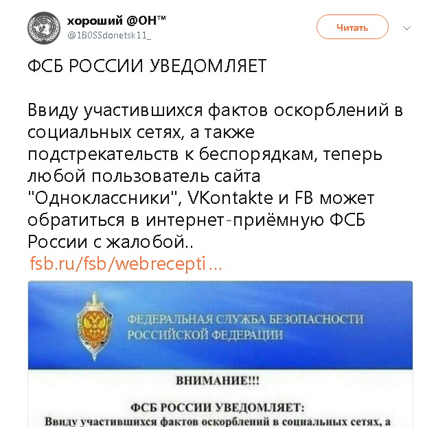 Смотрите, опять поехали. Помните, я вам писал именно об этом, вот прямо об этом. Когда твари организуют вот такой мега-теракт, в сети запускаются вот такие шняги со ссылками на сайт ФСБ. Зачем это делается? Чтобы люди тупо клепали всякую фигню про троллей на сайт ФСБ и: во-первых отвлекали больше сил на сию фигню, во-вторых - среди кучи хлама не сразу выявится нужное (например некий свидетель теракта в Кемерово напишет, но в груде фигни его письмо выявится позднее, чем нужно), ну и в-третьих - троллинг-издевательство над офицерами. Я писал вам именно об этом и уже скрины выкладыввал и вот опять... всё как и положено: