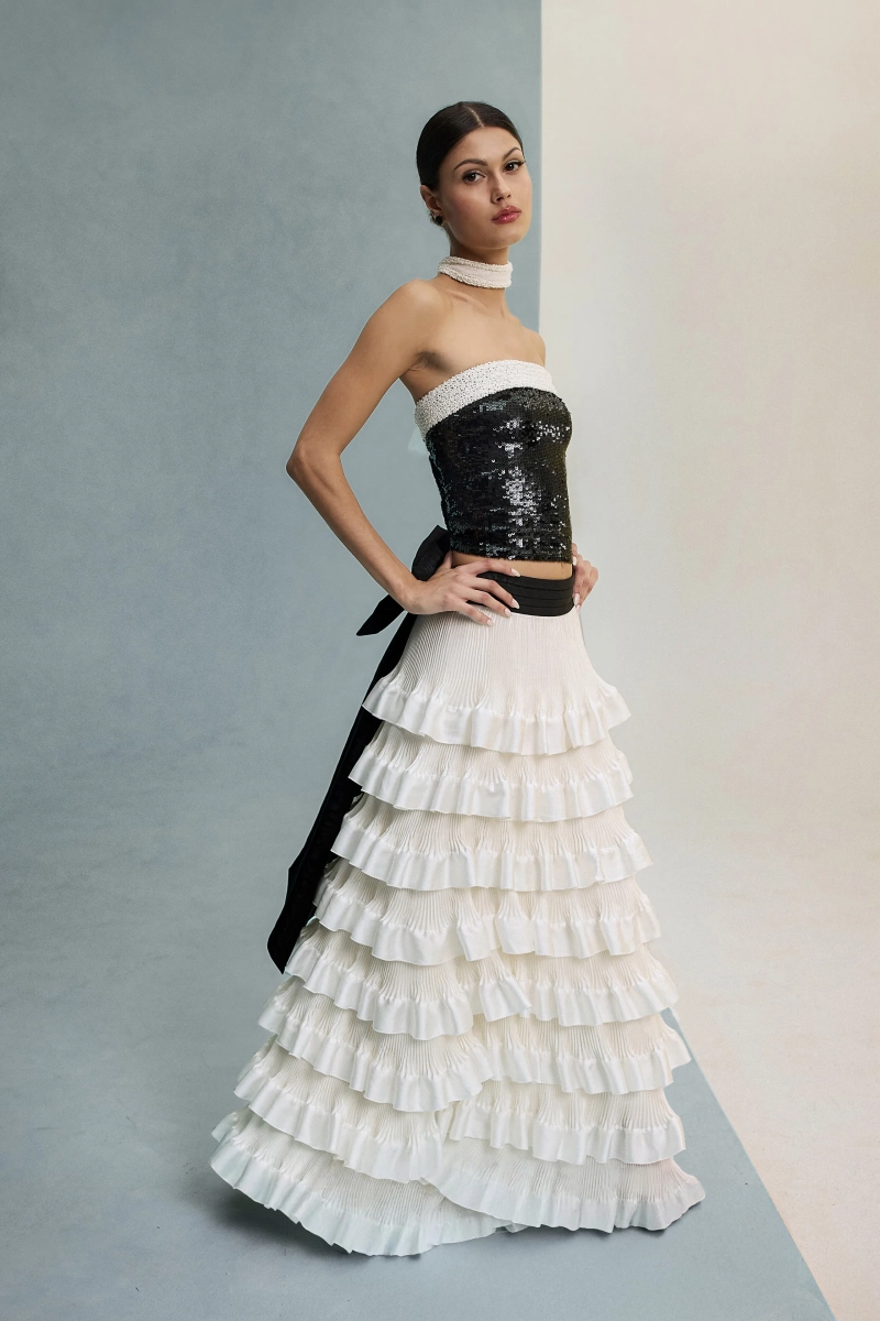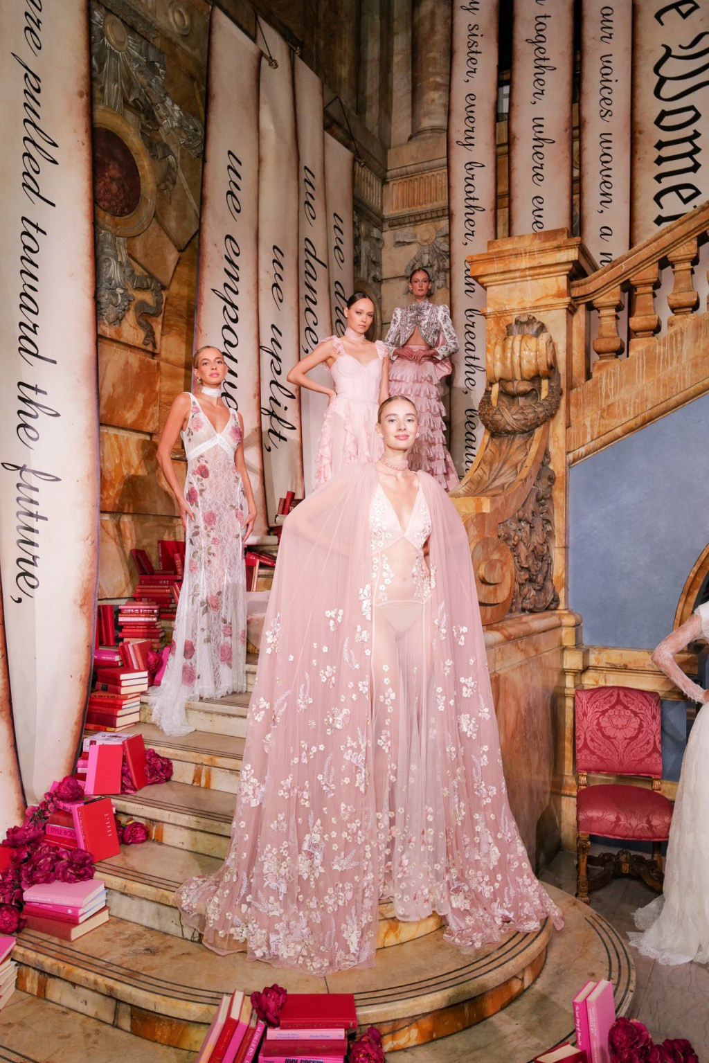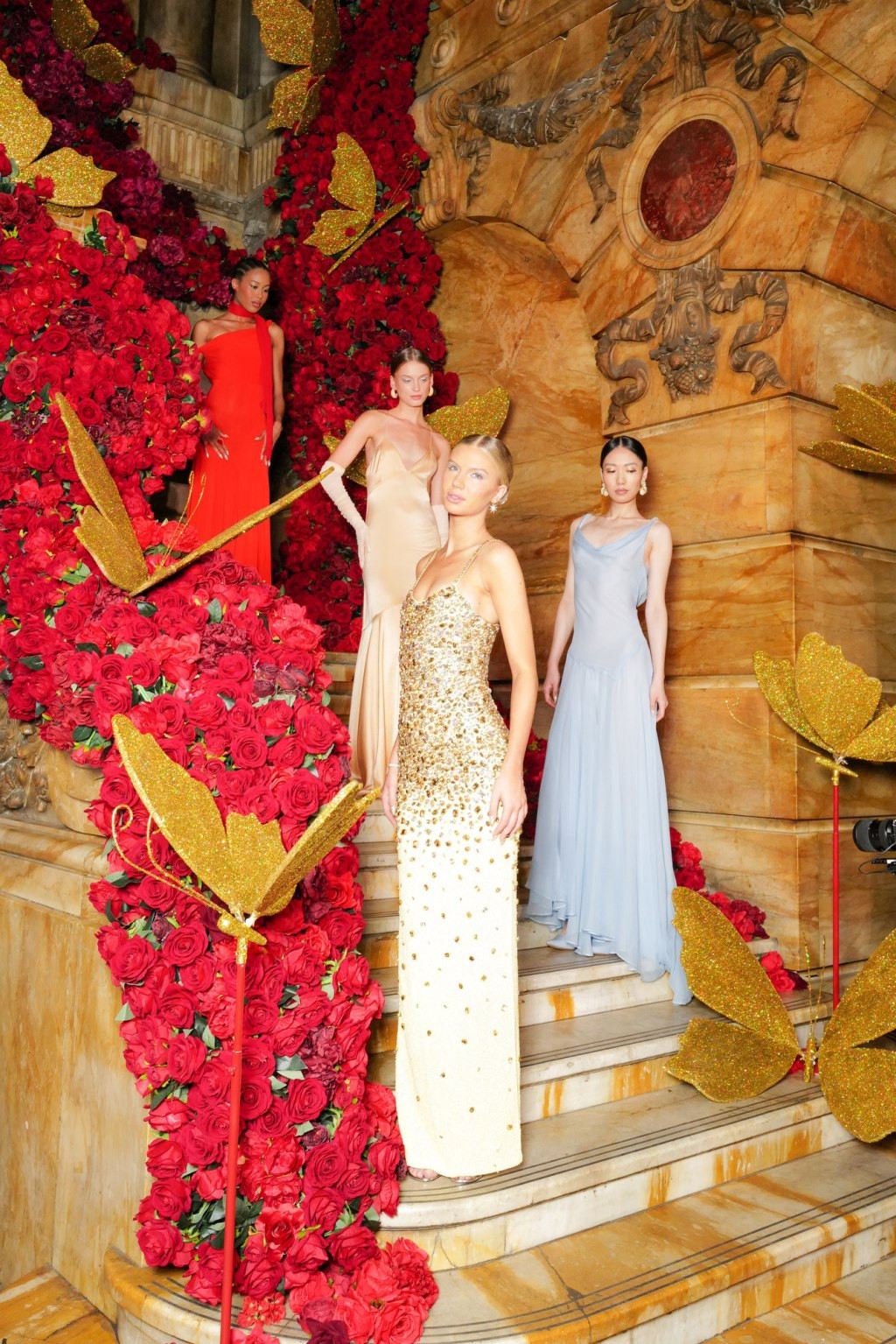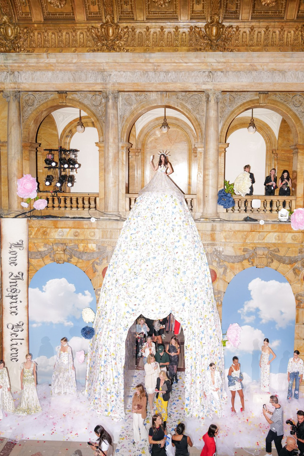 4 июля 2026 года станет 250-летием Америки, и Стейси Бендит хотела, чтобы весенняя коллекция Alice + Olivia 2026 года соответствовала этому моменту. Бендит решила отказаться от своего обычного места проведения в районе Митпэкинга и выбрала Суд для опекунов в центре Манхэттена, когда-то усадьбу, а теперь фон для различных юридических дел. По входе участников встречала интерпретация Леди Свободы от Бендит: модель, стоящая на балконе, в тиаре, усыпанной rhinestone, и облаченная в развевающееся белое цветочное платье, которое свисало на вход. (Цветы, объяснила Бендит, были "как сад Америки.")