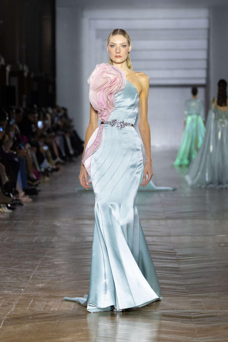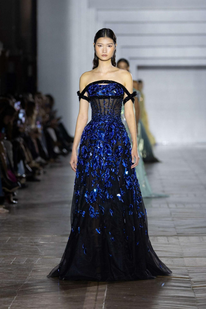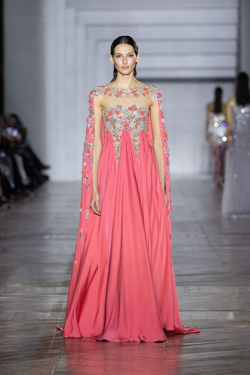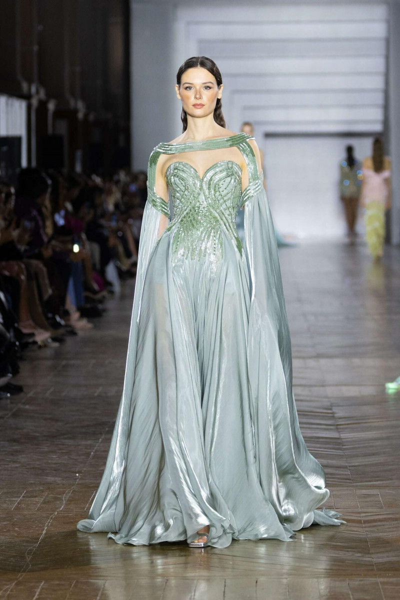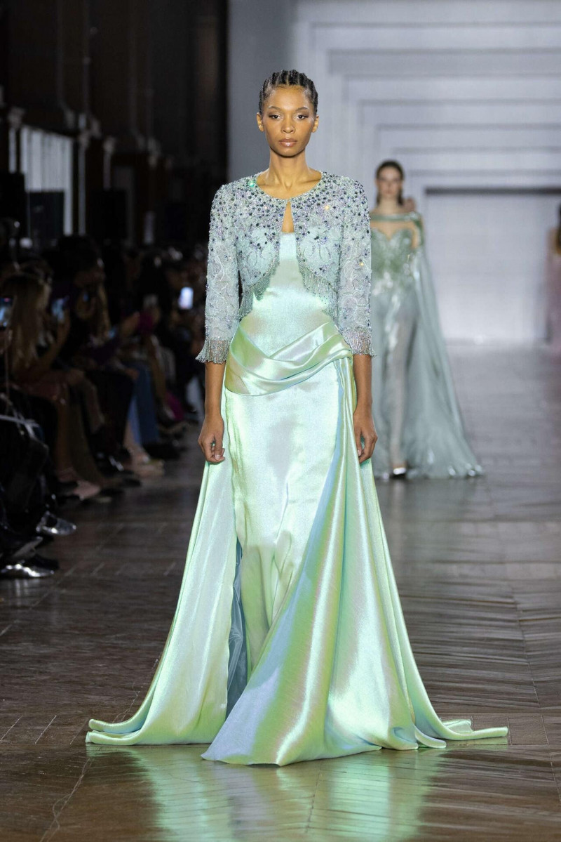 Силуэты собранные, архитектурные, очень точные. Видно, что каждая линия выверена. Вышивка, бисер, огранённые камни не выглядят украшением ради эффекта — они работают как отражающая поверхность, возвращающая свет обратно. Это не про блеск, а про глубину. В коллекции есть красивое напряжение: между плотными, почти монолитными образами и лёгкими, прозрачными, многослойными. Между жёсткой формой и текучестью. И именно в этом контрасте идея «граней света» раскрывается сильнее всего.