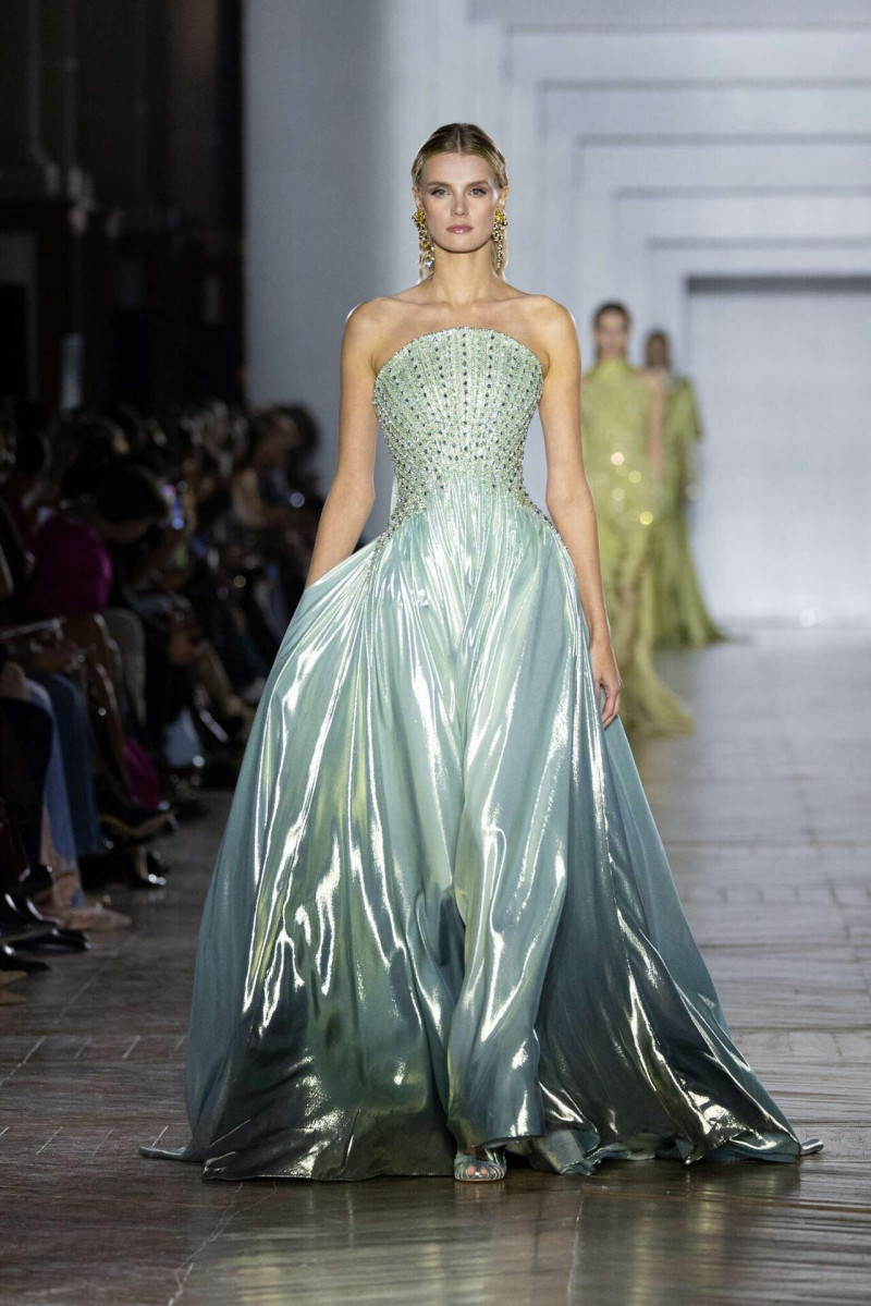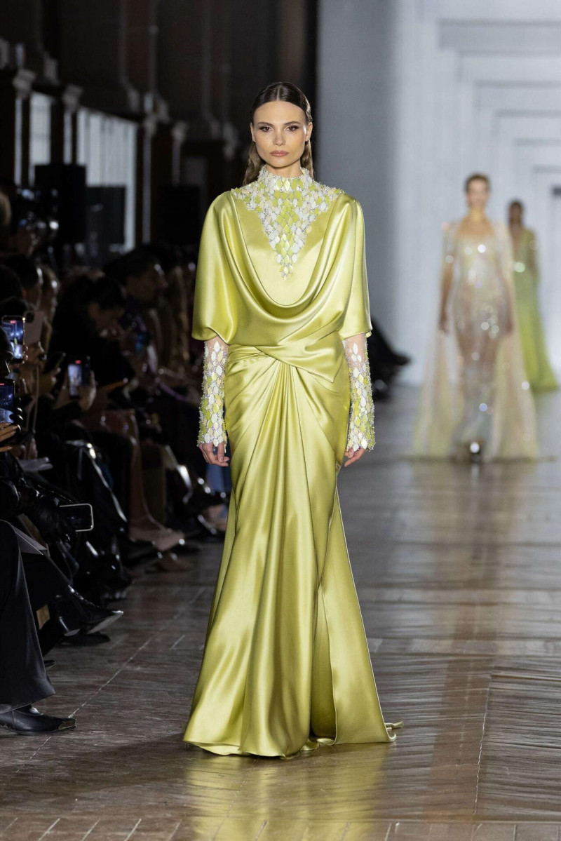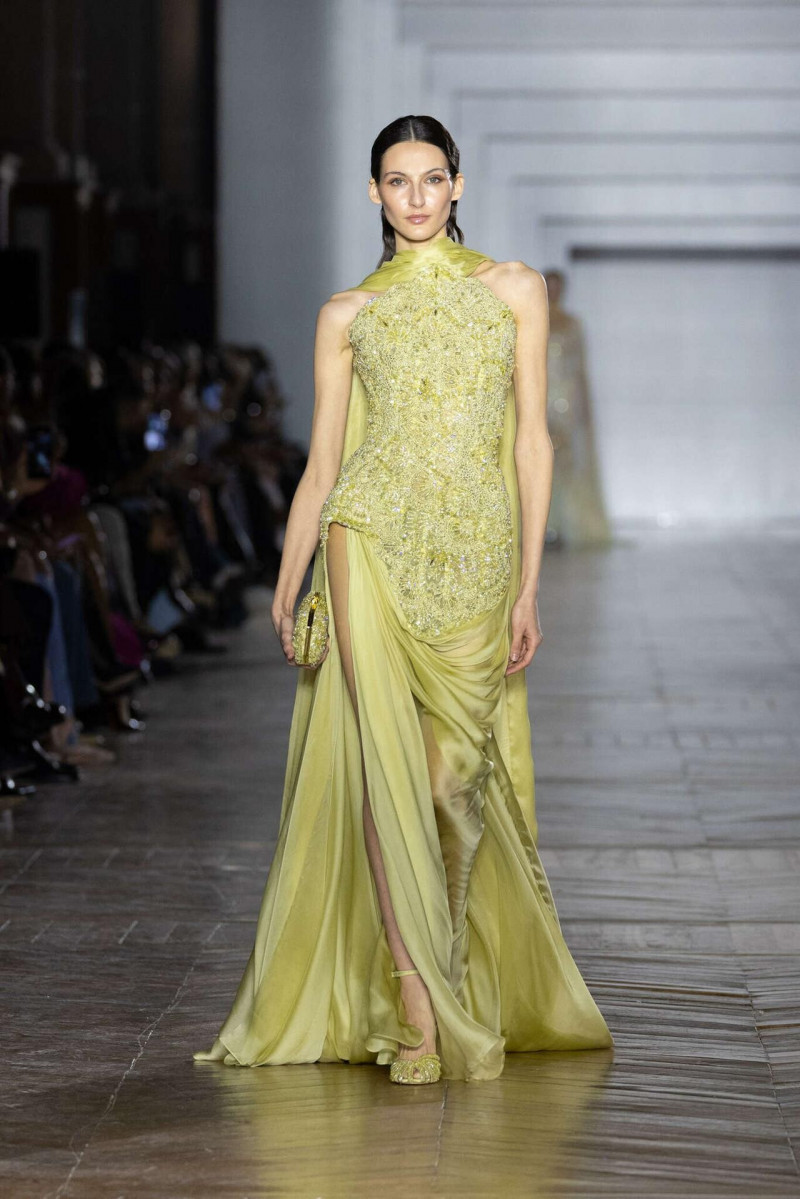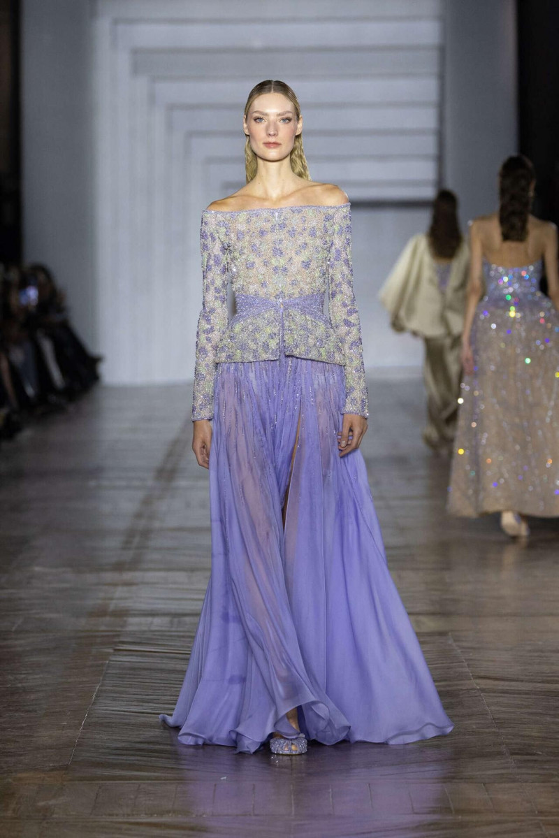 Цвета спокойные: металлик, нейтральные оттенки, редкие драгоценные акценты. Всё сдержанно, без давления. Высокая мода здесь не старается понравиться — она просто есть. И, наверное, в этом её сила. Коллекция не лезет в эмоции, не дёргает, не объясняется. Она оставляет место тишине. А тишина, если честно, — самая дорогая роскошь сейчас.