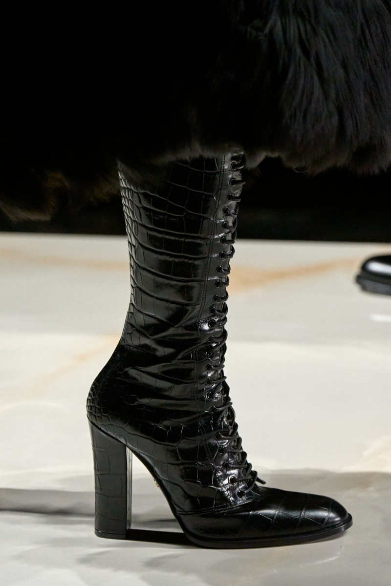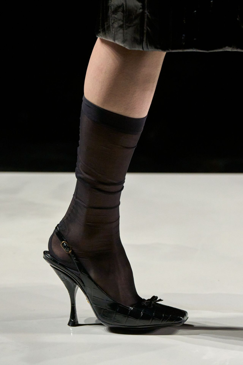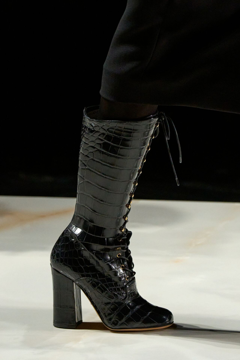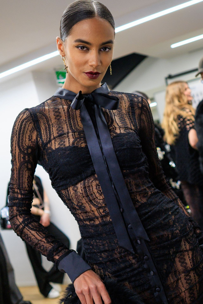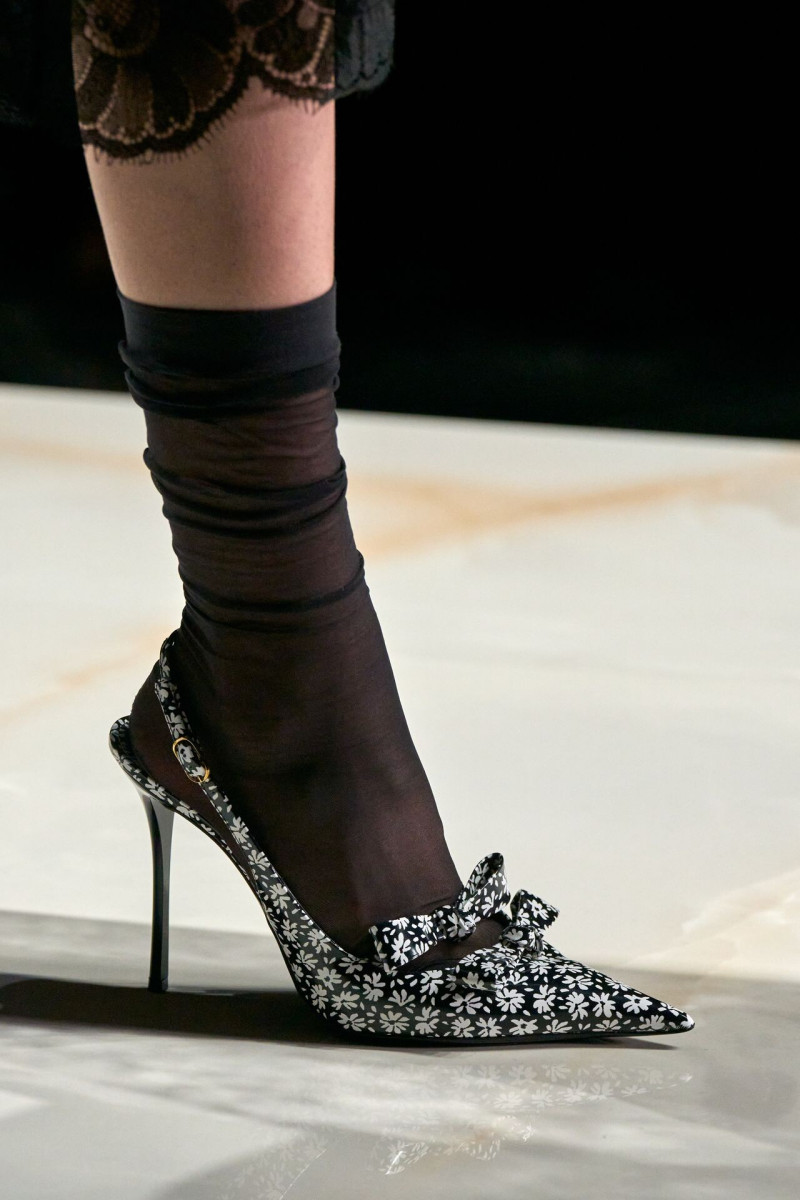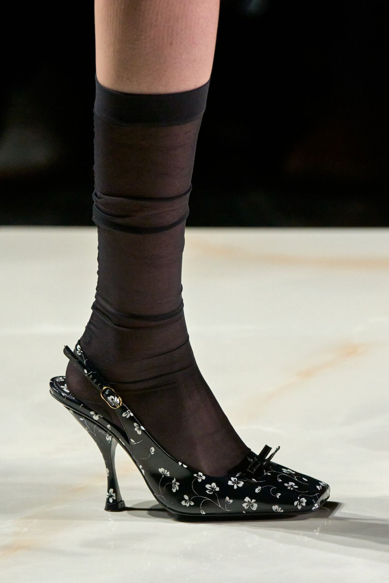 Финал возвращается к мягкости, но никогда не к хрупкости. Длинные черные платья, отделанные замысловатым кружевом, с мелкими цветочными принтами и скульптурными силуэтами, несут в себе тихую уверенность женщин, понимающих свою собственную силу. Отсылки к послевоенному периоду вновь находят отклик: восстановление, переосмысление, возвращение.