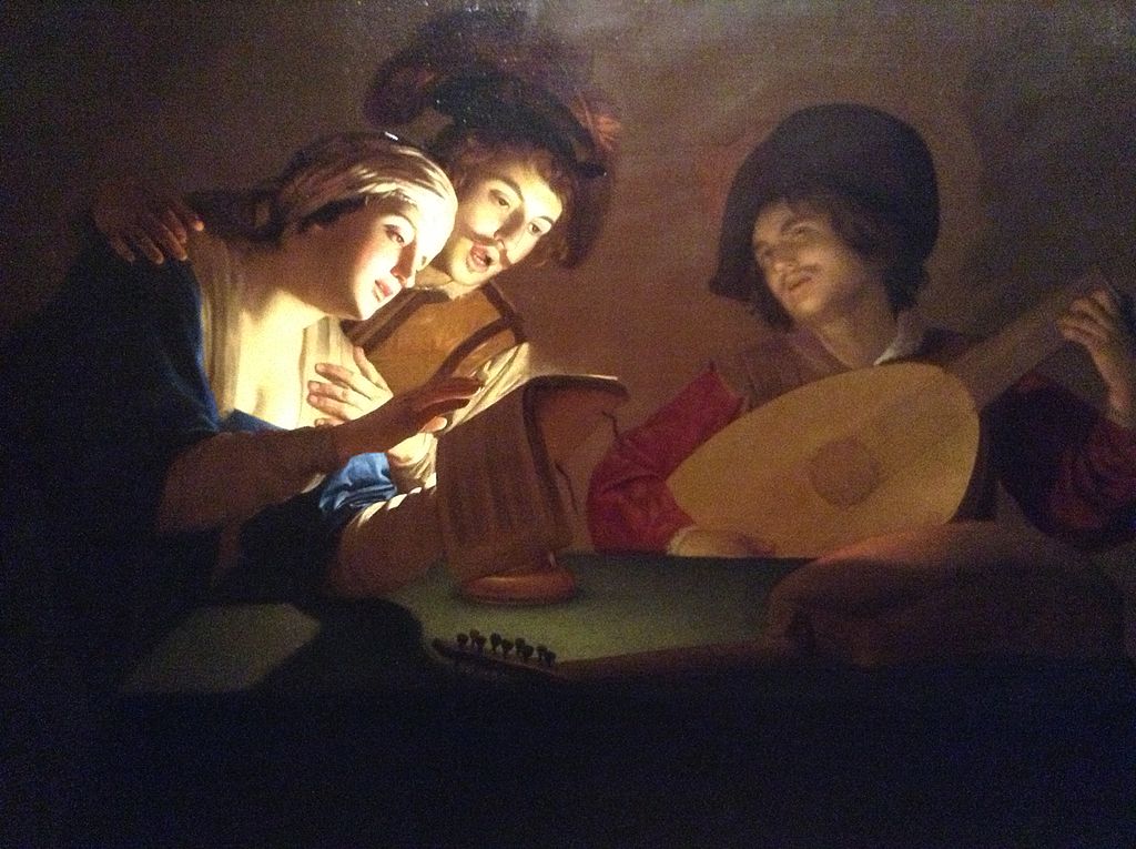 Во время пребывания в Риме в начале творческого пути Хонтхорст испытал влияние Караваджо, который в своих картинах использовал сильное кьяроскуро с одним источником интенсивного света и глубокими тенями. Сюжеты вроде «Концерта» были популярны у Караваджо и его последователей, и ночные сцены Хонтхорста так понравились в Италии, что он даже получил прозвище Герард (Ночной).