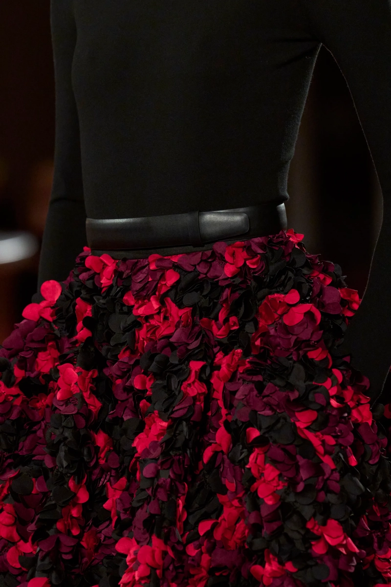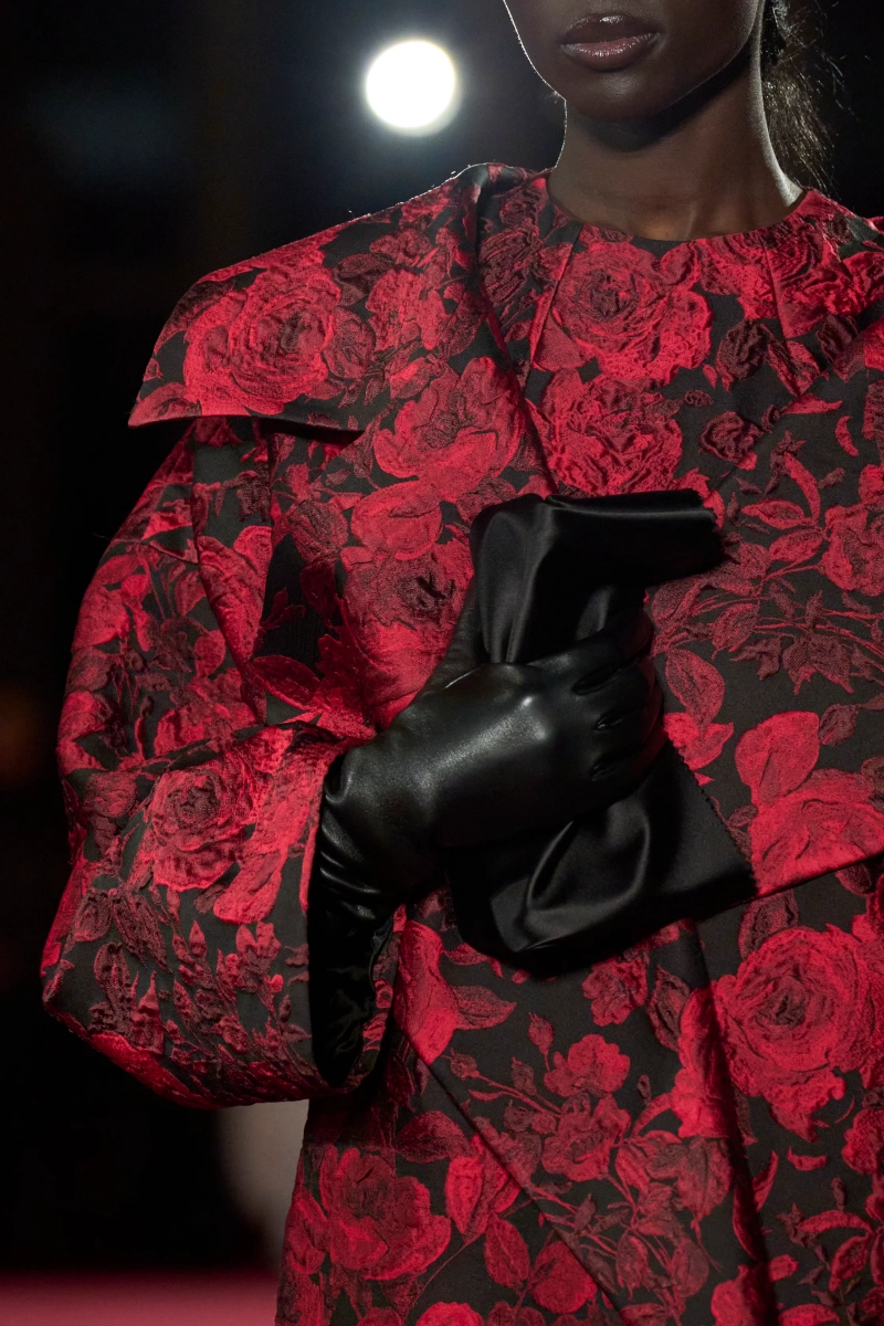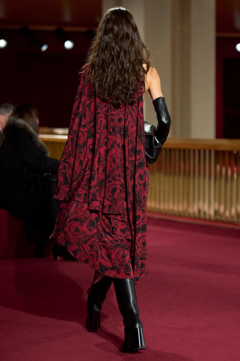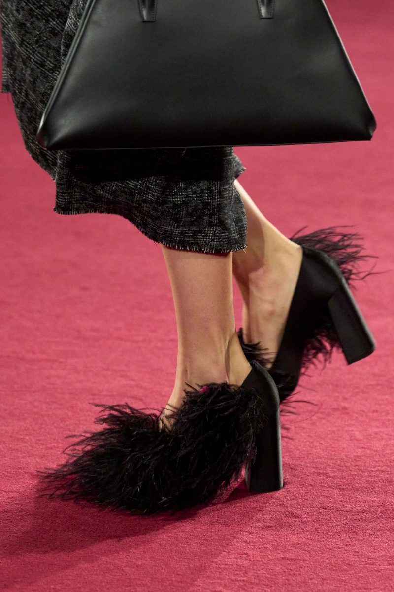 Палитра и основные элементы усиливали ощущение непрерывности. Черные водолазки, верблюжьи пальто, безупречно белые рубашки и черные платья — четыре столпа, которые Корс в шутку называет своей «королевской битвой», — все присутствовали, но редко в самой буквальной форме. Некоторые водолазки появлялись в виде накладок (декки), накладывавшихся под пиджаки, чтобы сохранять тепло и форму без визуальной тяжести. Эта идея легкости через наслоение была ключевой для тактильной логики коллекции: одежда строилась слоями, но никогда не ощущалась громоздкой или ограничивающей, сохраняя чувство плавной городской мобильности.