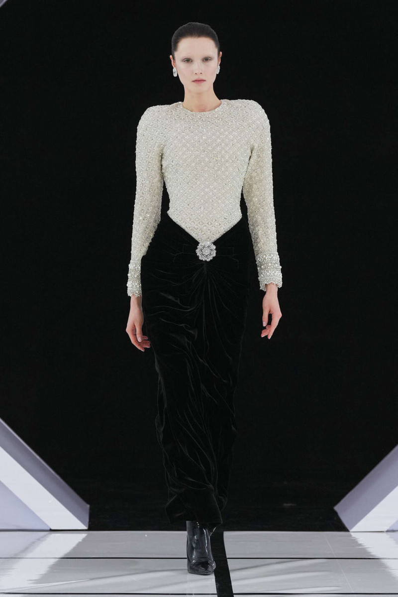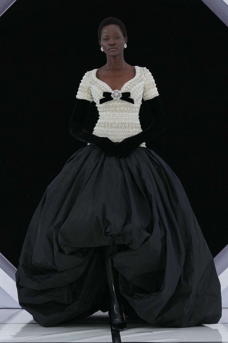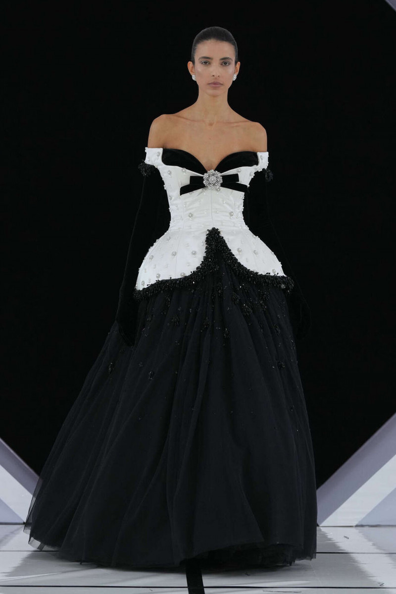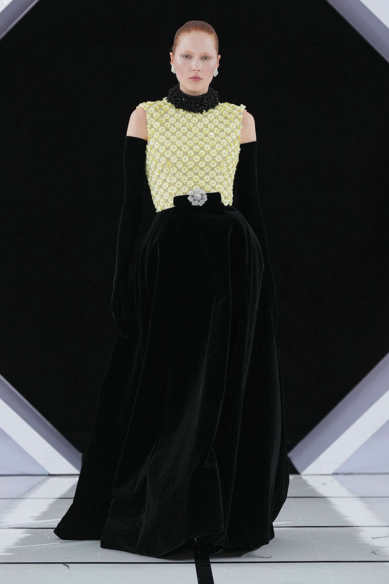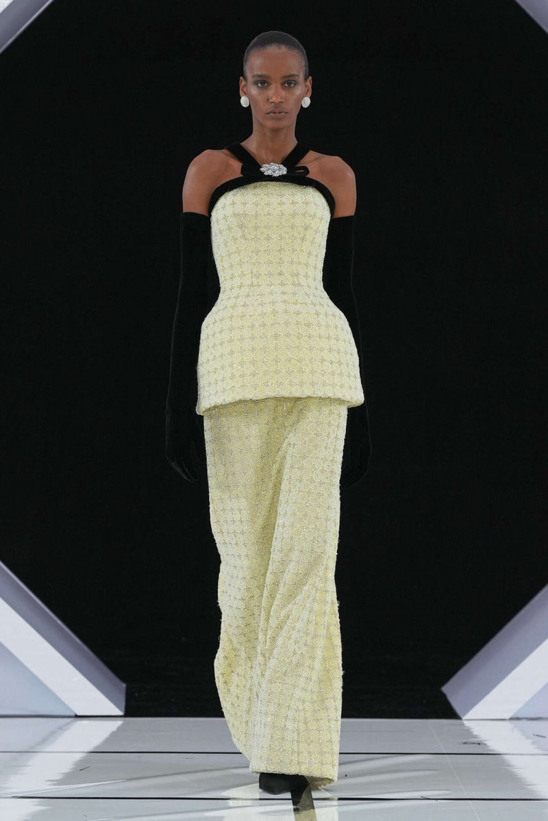 Размещенные в элегантном, футуристическом выставочном пространстве, каждый образ нес в себе присутствие сохраненного артефакта, перенесенного в будущее. Его словарь, вдохновленный высокой модой, оставался неизменным, однако силуэты демонстрировали повышенную дисциплину. Объем по-прежнему был щедрым, но вырезан с точностью; драма была сведена к контролю. Эффект был меньше театрализованного излишества и больше архитектурной убежденности.