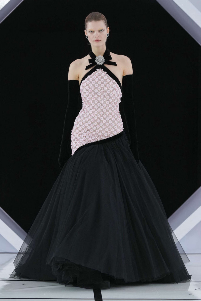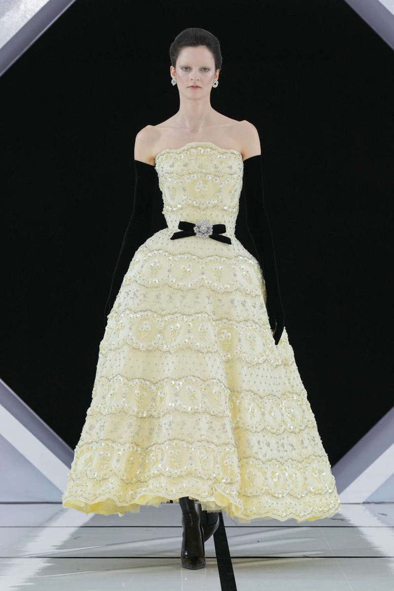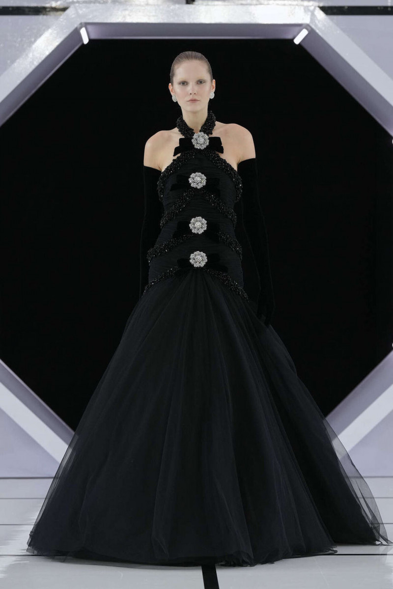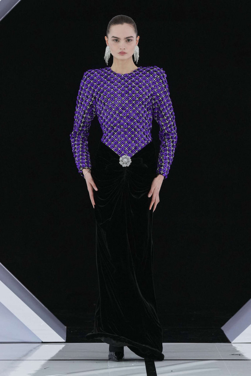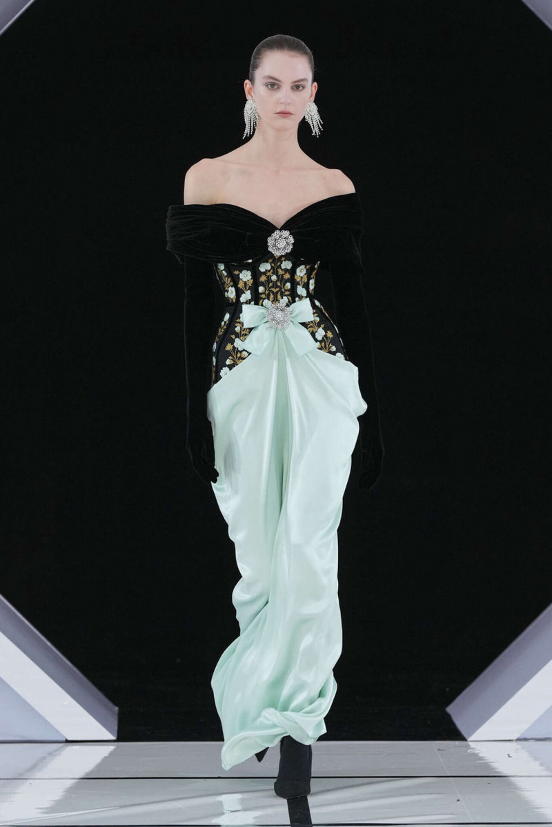 Размещенные в элегантном, футуристическом выставочном пространстве, каждый образ нес в себе присутствие сохраненного артефакта, перенесенного в будущее. Его словарь, вдохновленный высокой модой, оставался неизменным, однако силуэты демонстрировали повышенную дисциплину. Объем по-прежнему был щедрым, но вырезан с точностью; драма была сведена к контролю. Эффект был меньше театрализованного излишества и больше архитектурной убежденности.