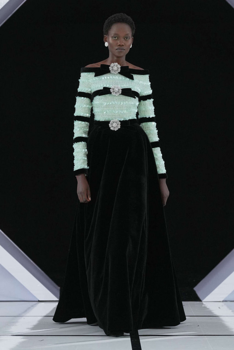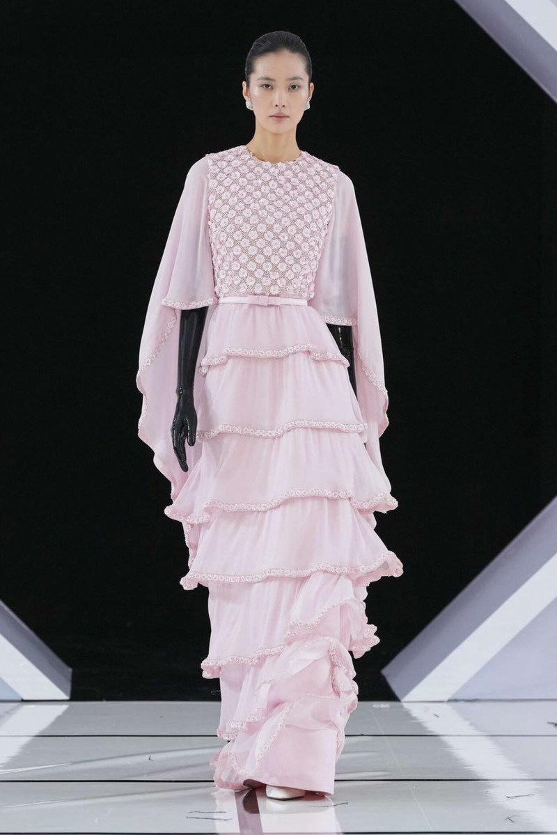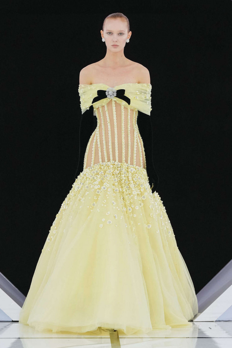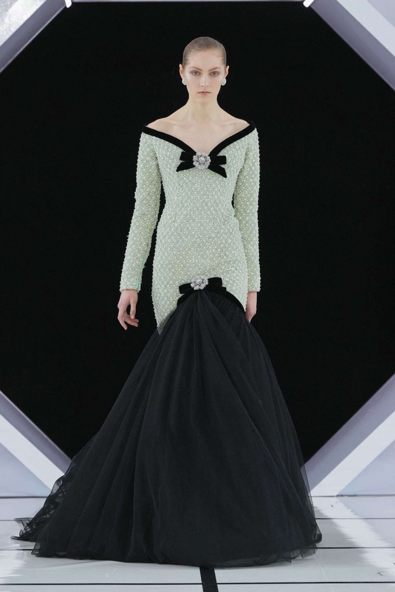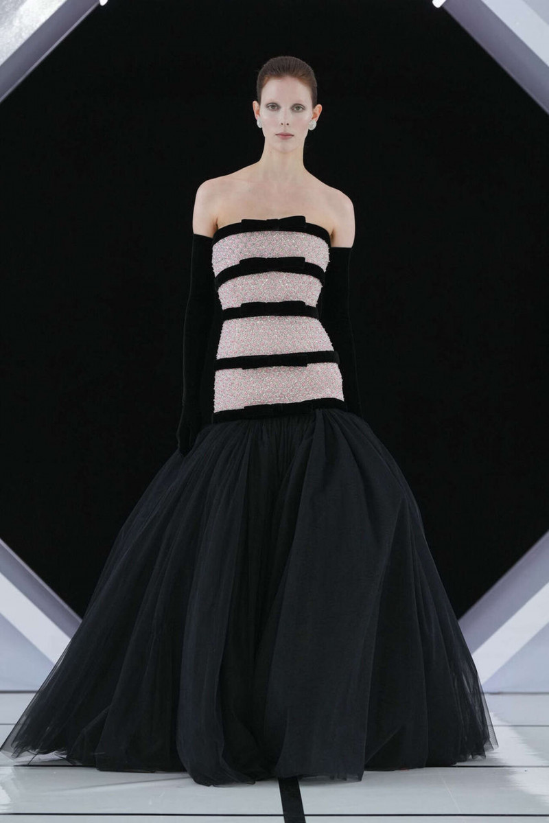 Размещенные в элегантном, футуристическом выставочном пространстве, каждый образ нес в себе присутствие сохраненного артефакта, перенесенного в будущее. Его словарь, вдохновленный высокой модой, оставался неизменным, однако силуэты демонстрировали повышенную дисциплину. Объем по-прежнему был щедрым, но вырезан с точностью; драма была сведена к контролю. Эффект был меньше театрализованного излишества и больше архитектурной убежденности.