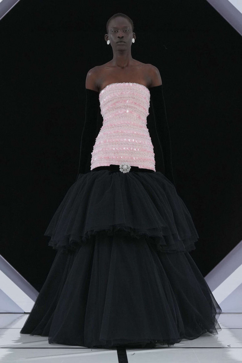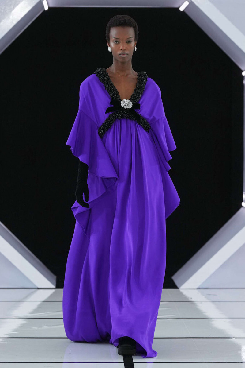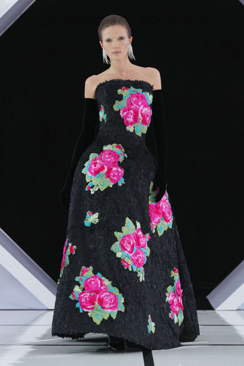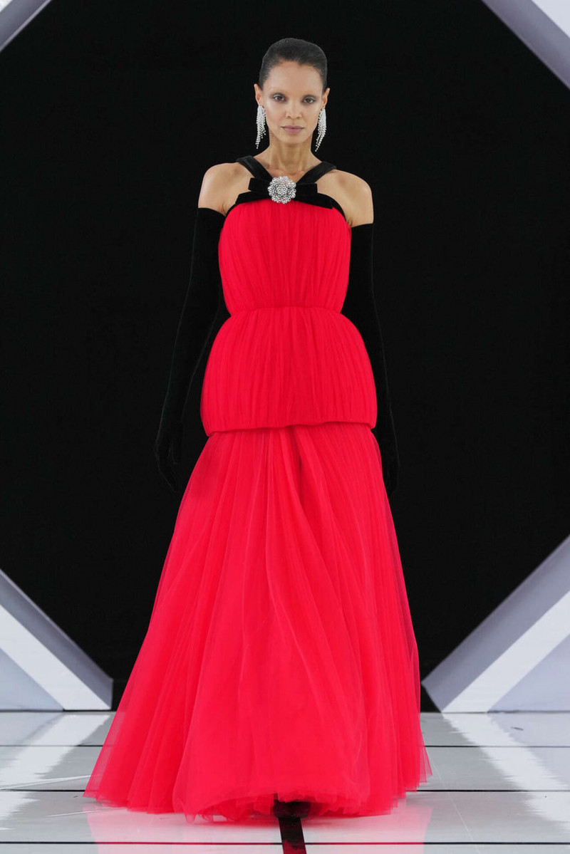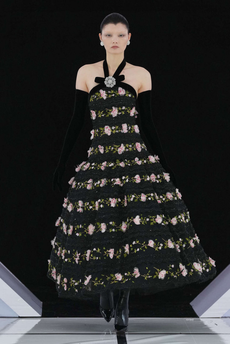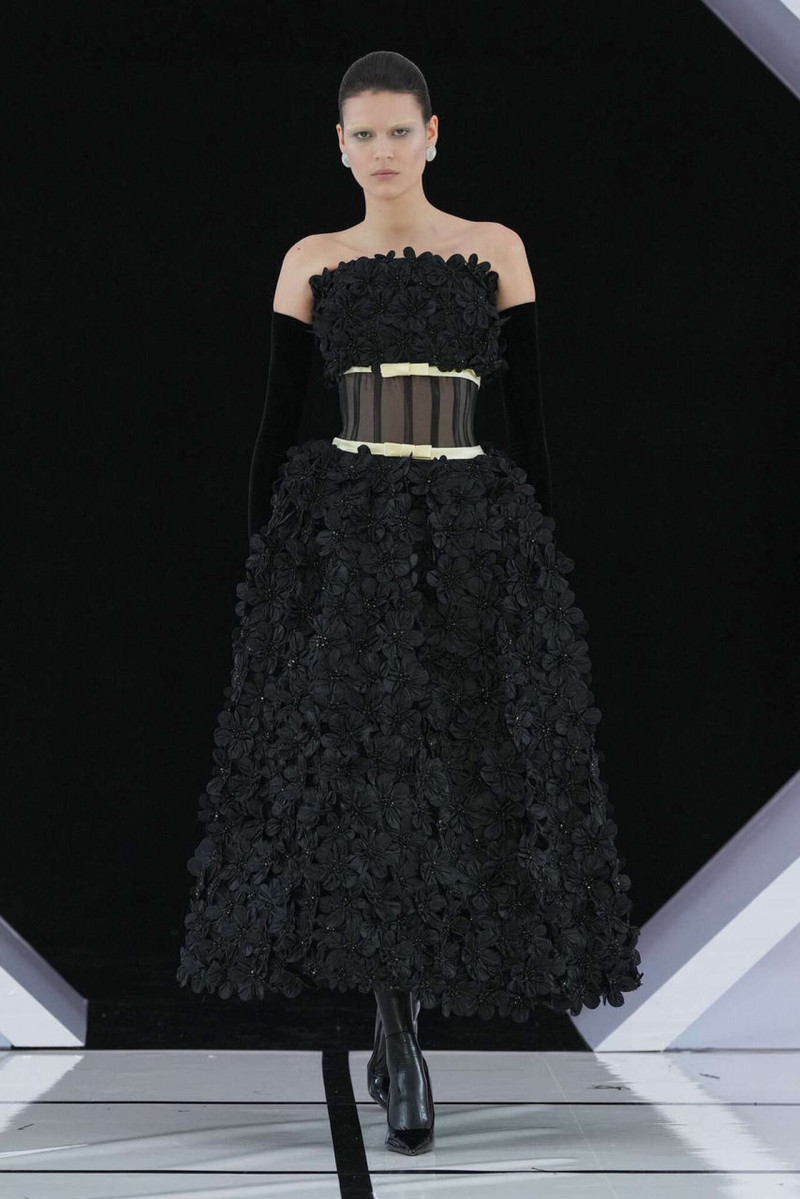 Вечерняя одежда последовала этому примеру. Черные платья с выраженными плечами и утонченными талиями передавали власть через пропорции, а не только через украшения. Насыщенные силуэты в пол привлекали внимание через архитектуру формы. Когда появлялись кристаллы или объемные аппликации, они служили строению тела, а не подавляли его. Perhaps most compelling was Quinn’s elevation of ready-to-wear through ritualistic codes. A sharply tailored coat possessed the gravitas of formal regalia; a floral dress, executed with couture rigor, felt less like consumption and more like acquisition. The message was clear: everyday dressing, too, can hold a ceremony.