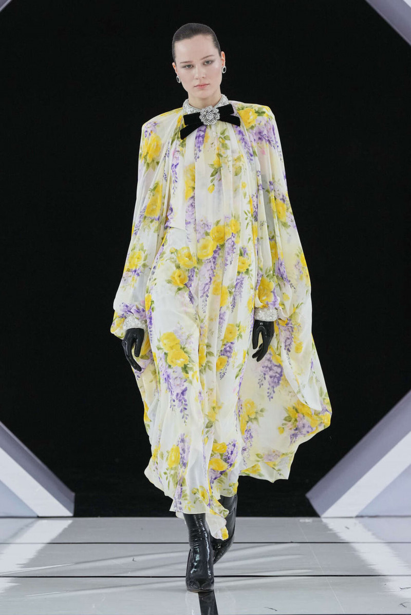 Цветочные мотивы, долгое время ассоциировавшиеся с фирменным стилем Куинн, вышли за пределы простой декоративности. Цветы стали структурными элементами, встроенными в конструкцию одежды, а не добавленными как украшение. Принты стали более чёткими, почти графичными, усиливая целостность кроя. Романтика уступила место решительности.