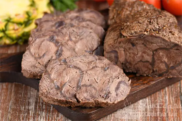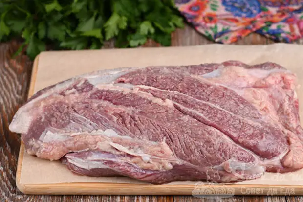 2. Говядина в маринаде из ананаса. Для приготовления купила плоский кусок говядины (1 кг, голяшка). Промываем его и срезаем все части, которые не нравятся (пленки и т.п.).