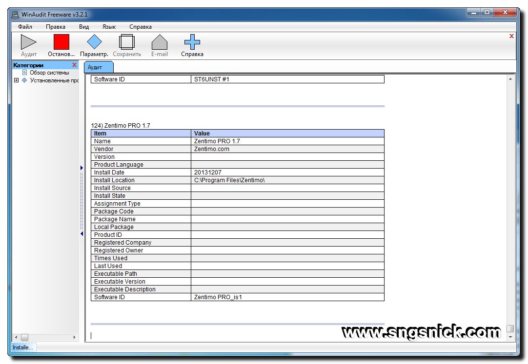 При запуске WinAudit вначале проводит сканирование (Аудит) категорий, установленных Вами в Параметрах.