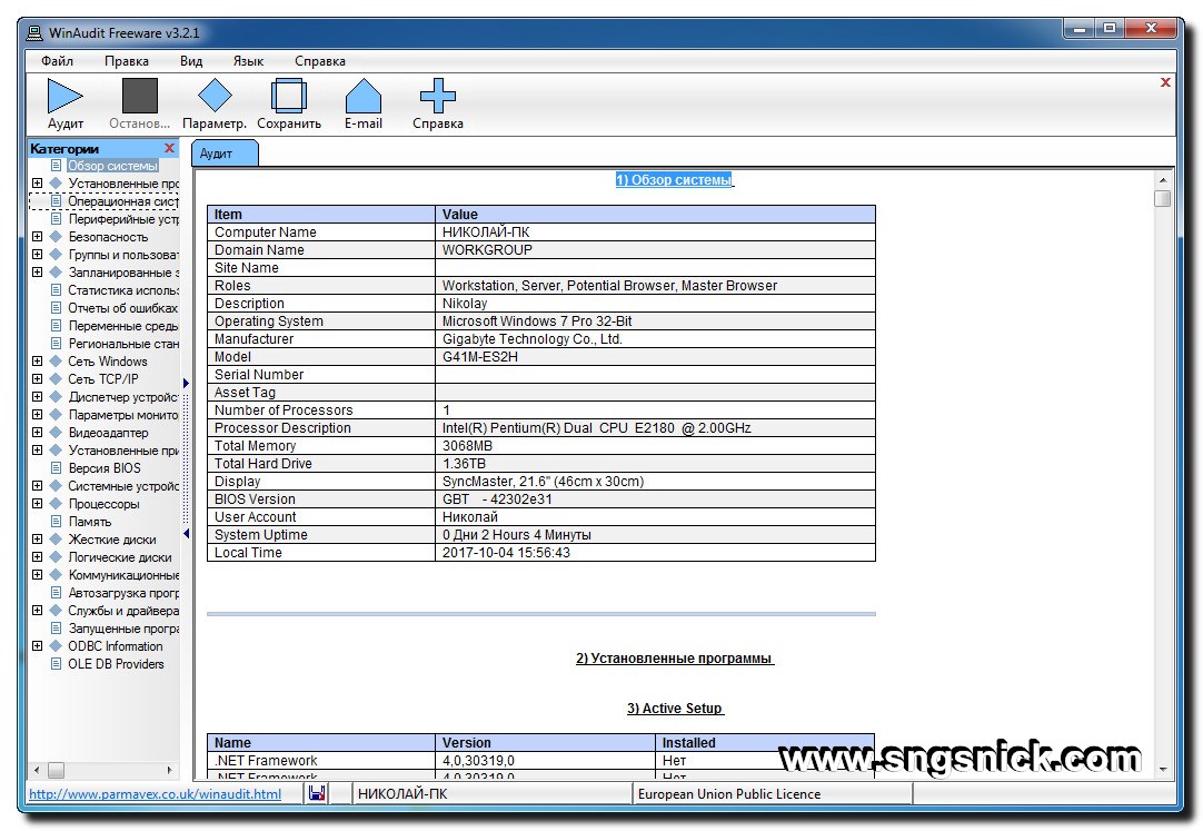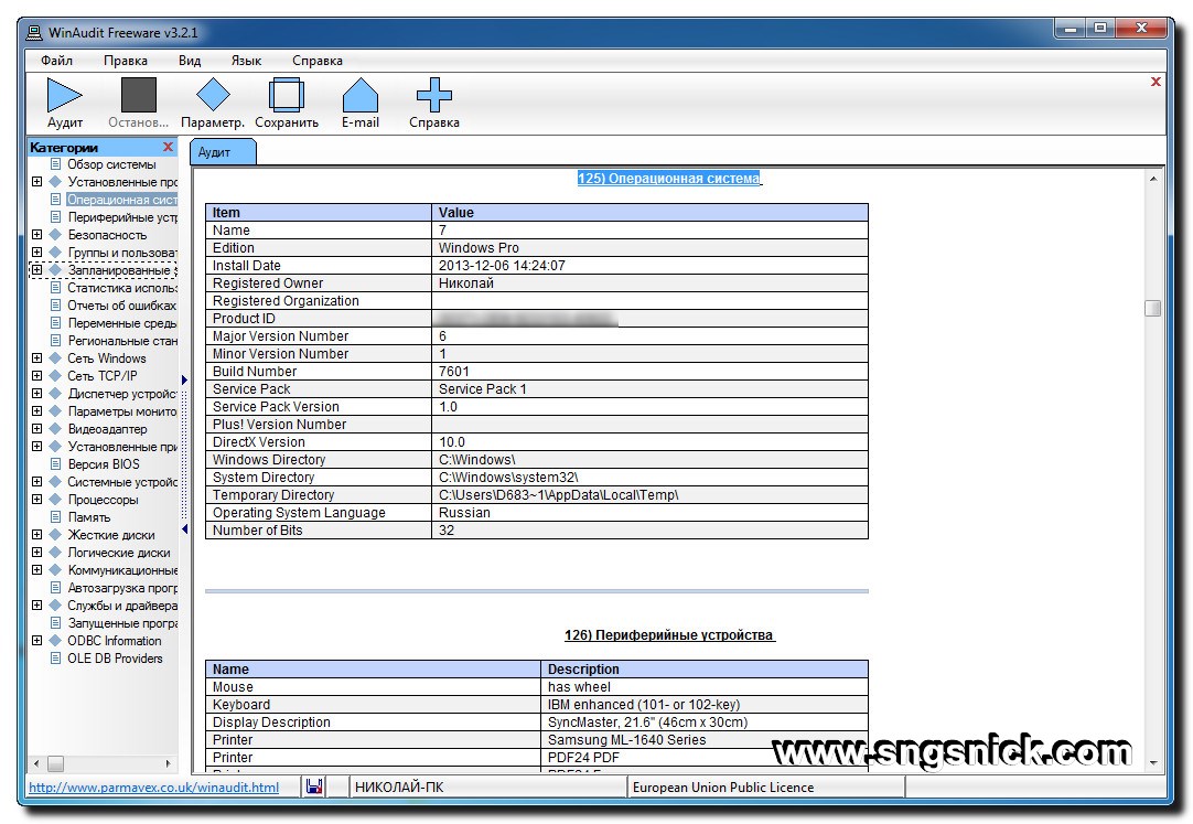При подготовке статьи использовалась портативная версия программы WinAudit 3.2.1 Rus Portable на русском языке.