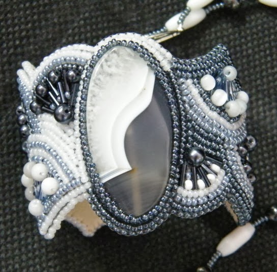 Кабошоны агата, бусины кошачьего глаза, чешский бисер.