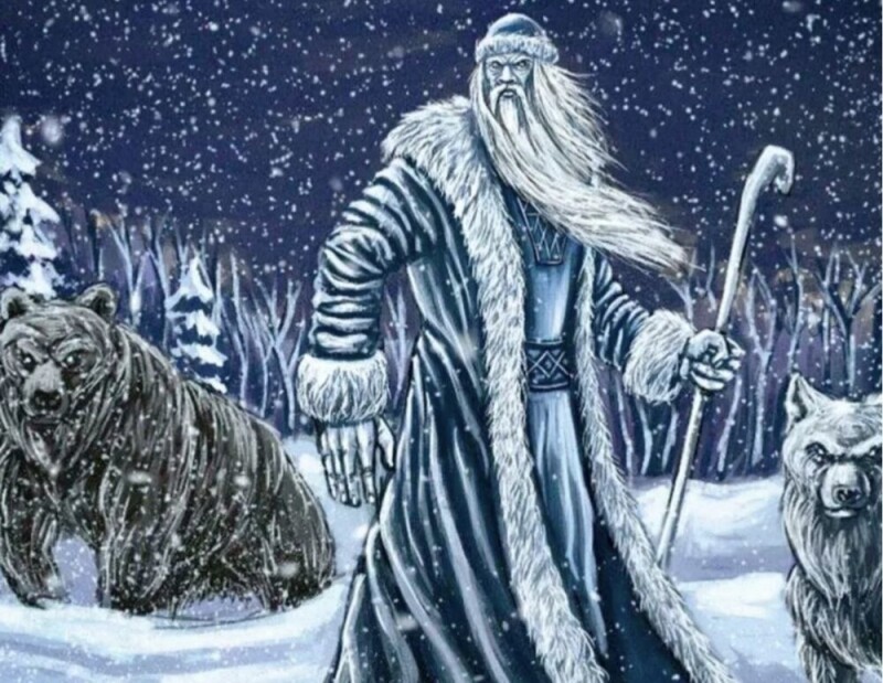 И вот он внешностью больше всего похож на знакомого нам Деда Мороза — старик с длинной бородой и булавой в руках. Ему лучше не жаловаться на стужу и мороз, а тот, кто бодр и весел, может заслужить от него здоровье. Почти как тот самый Морозко, но он у нас следующий в списке)