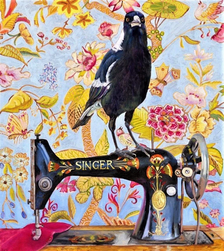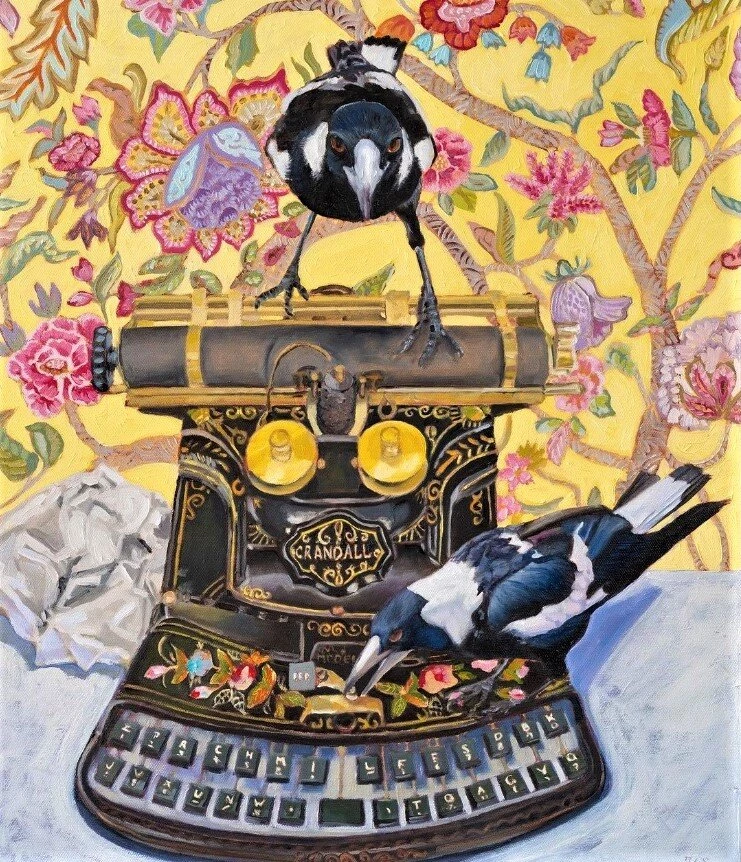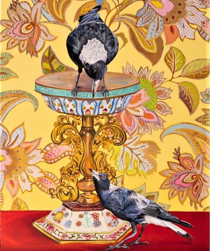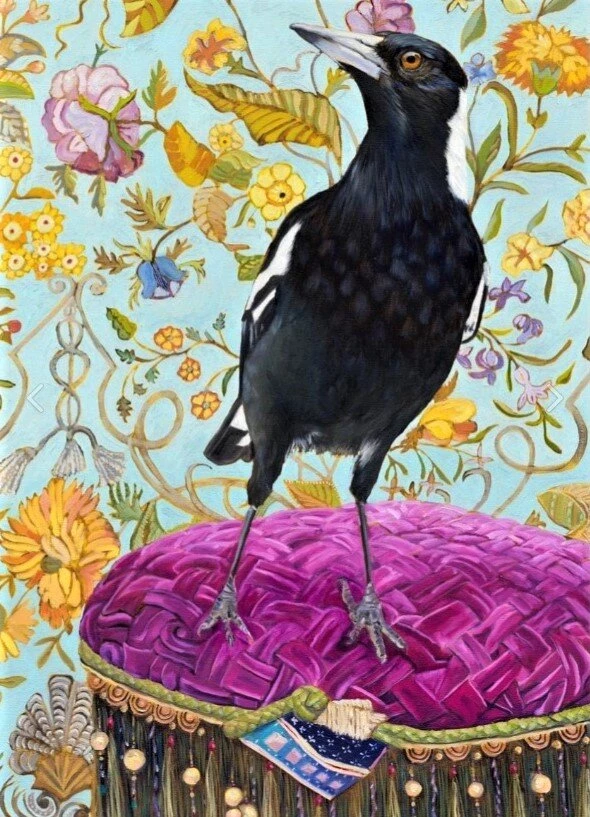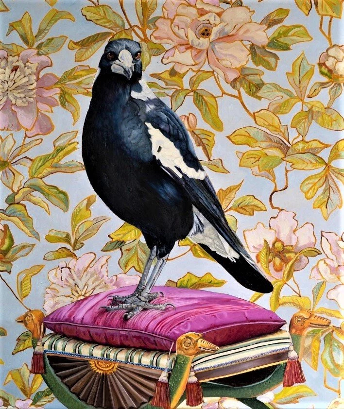 На картинах Фионы мы часто видим обычных сорок. Да, они тоже есть в Австралии. Сороки такие элегантные и умные. Художница так полюбила этих красивых птиц, что они стали для нее частью большой семьи.