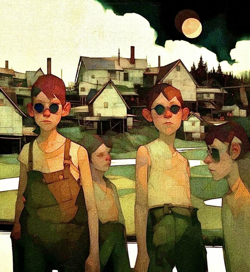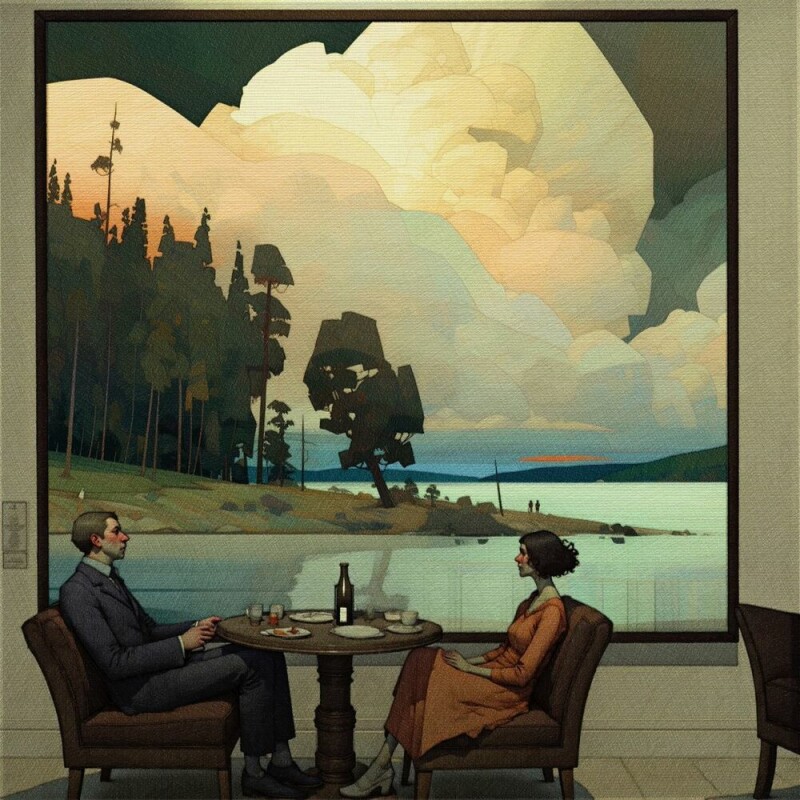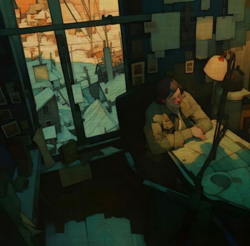 Где-то работа крик, где-то задумчивое свидание, отстраненность или ликование, живая передача ощущения, что еще больше подчеркивает игра тени и света. Картины яркая смесь реализма с графикой, так же в них присутствует некая сюрреалистичность, метафоричность образов.